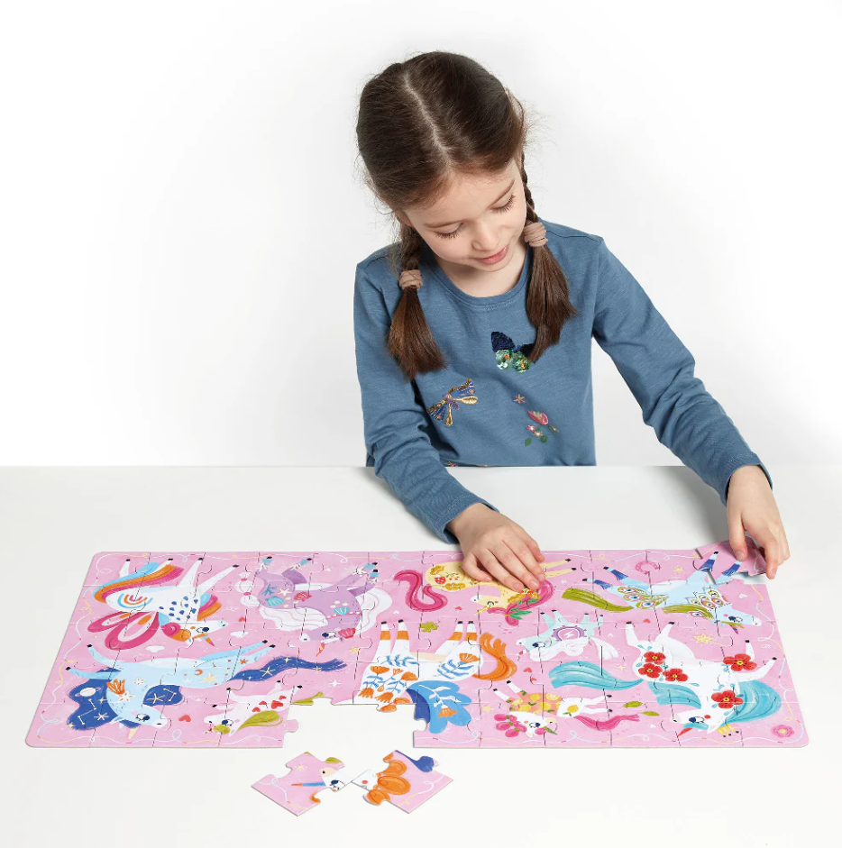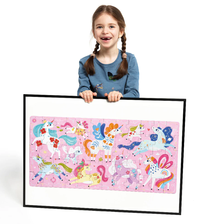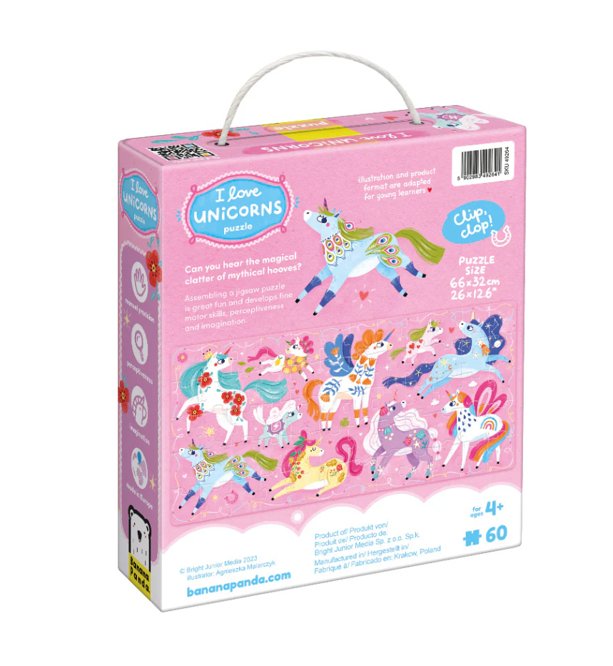 Яркий пазл Banana Panda с милыми единорогами для детей, который помогает развивать внимание, воображение и мелкую моторику. Крупные и прочные детали удобно держать маленьким ручкам, насыщенные цвета и добрые иллюстрации привлекают ребенка и побуждают к игре. Подходит для совместных занятий родителей с детьми, способствует развитию усидчивости и логического мышления. Изготовлен из плотного безопасного картона с качественной печатью.
