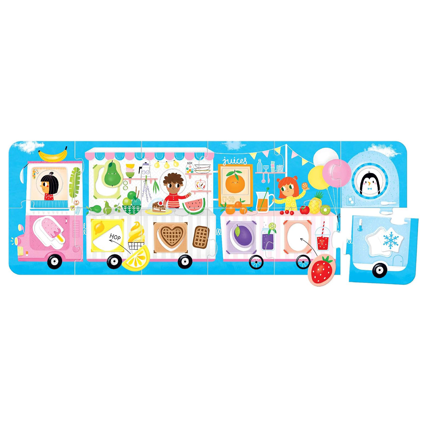 Яркий развивающий пазл Banana Panda для малышей, который знакомит ребенка с продуктами и атмосферой продуктового рынка. Крупные прочные детали удобно держать маленьким ручкам, они легко соединяются и помогают тренировать мелкую моторику, внимание и логическое мышление. Во время игры ребенок учится сравнивать, находить пары, называть продукты и расширяет словарный запас. Красочные иллюстрации привлекают внимание и побуждают к обсуждению того, что изображено на картинке, что способствует развитию речи и воображения. Пазл изготовлен из плотного безопасного картона, подходит для совместных игр родителей с детьми и станет полезным подарком для раннего развития ребенка.