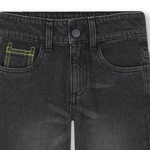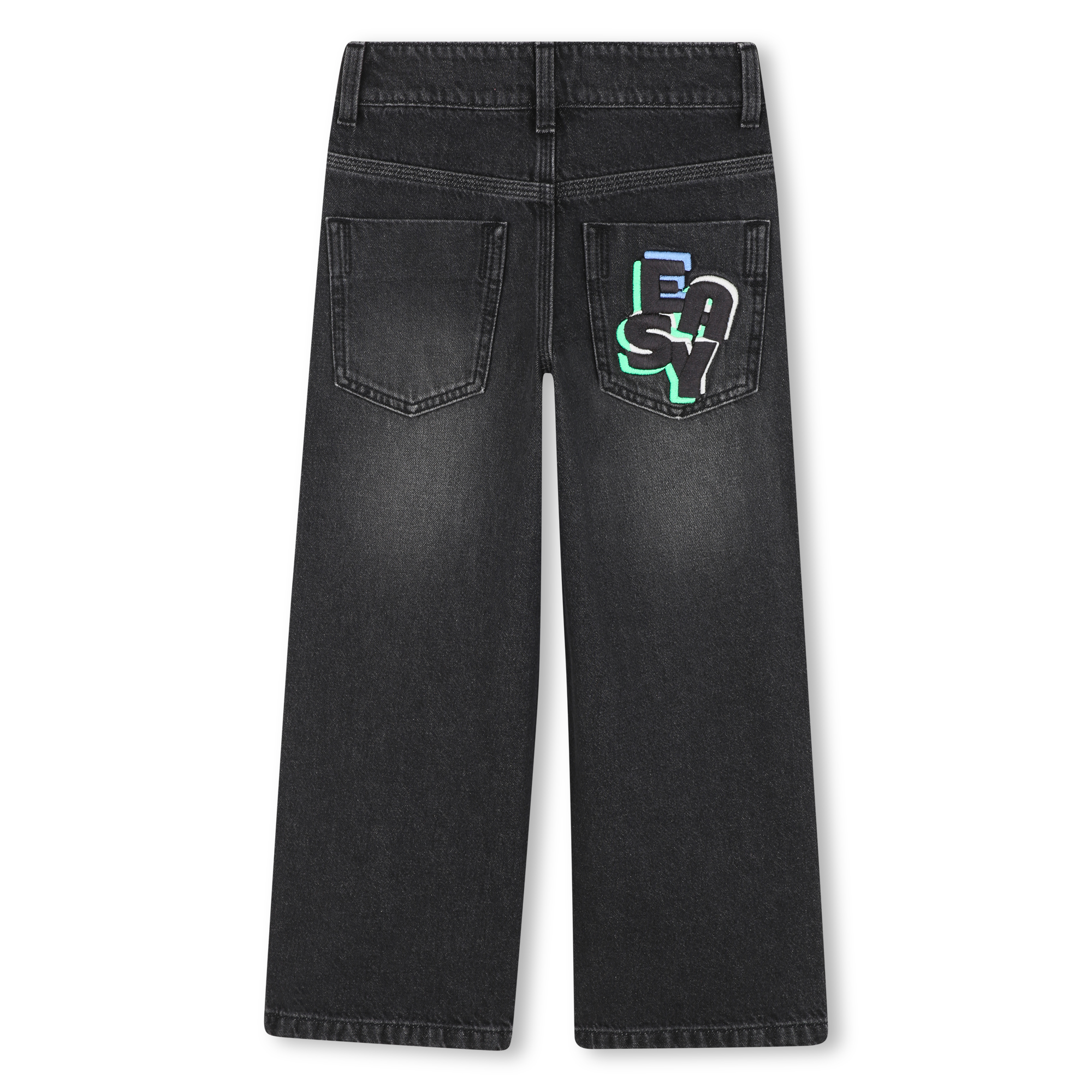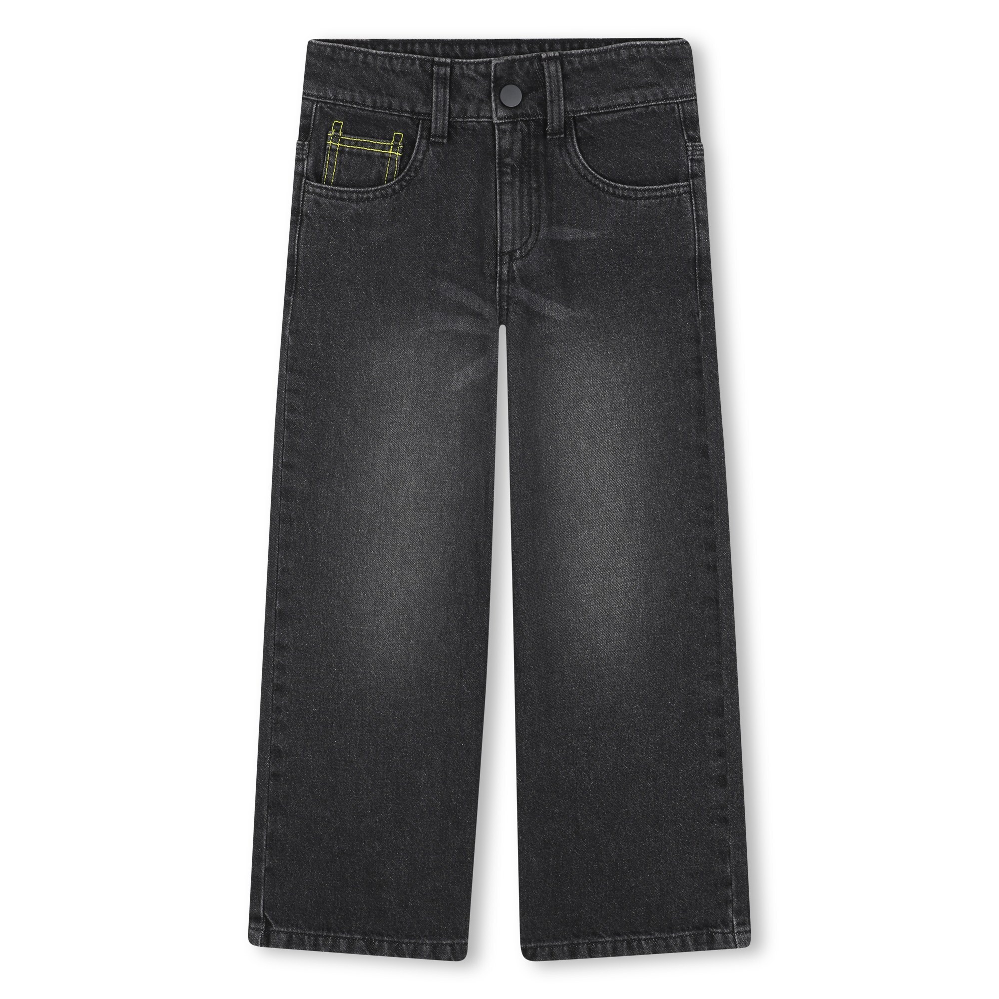 Хлопковые джинсы Billieblush в графитово-черном цвете. 5 карманов и утяжка на поясе. Широкий крой и вышивка на заднем кармане.
