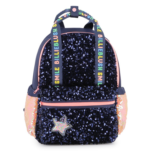 Рюкзак Billieblush, практичный и стильный. Блестящие пайетки и звездочка на кармане, брендированные ручки. Боковые карманы для бутылочки с водой, внешний карман, уплотненные лямочки и спинка.