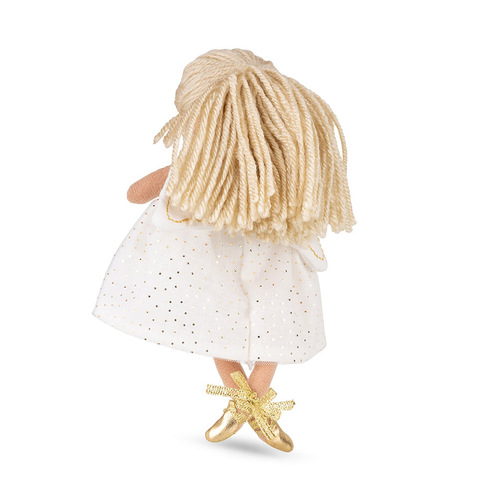 Мягкая куколка от Bonton Toys с крылышками, в белом платье и золотых пуантах. С такой феечкой не захочется расставаться! Куклка идет в красивой подарочной коробке. С ней можно играть, а коробочку использовать для разных мелочей или сделать из нее кроватку. Благодаря вышитым деталям кукла полностью безопасна даже для маленьких деток.