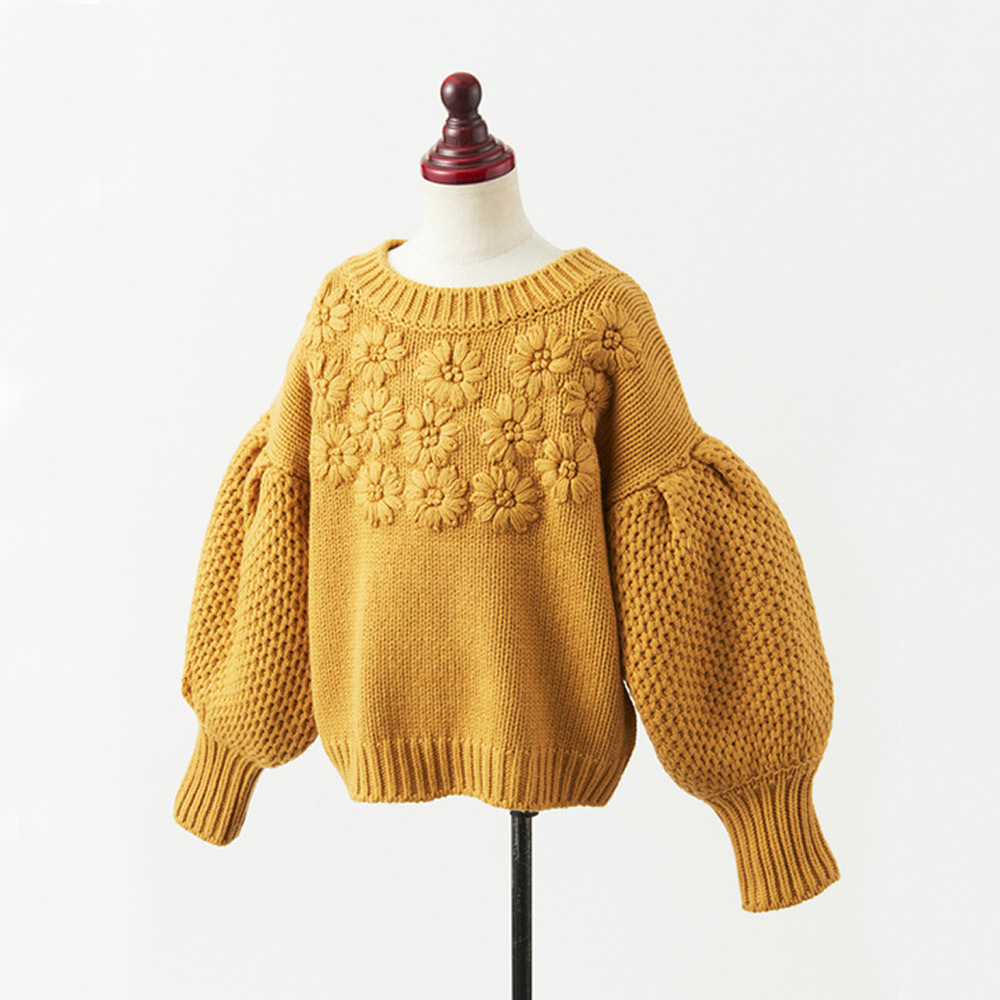 Уютный вязаный джемпер C'era una volta с красивым цветочным узором на груди и объемными рукавами.