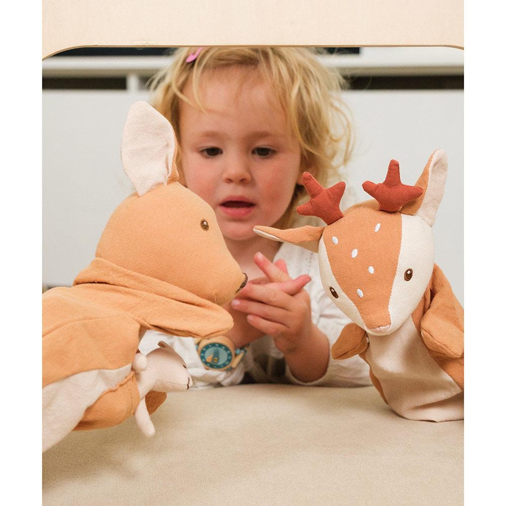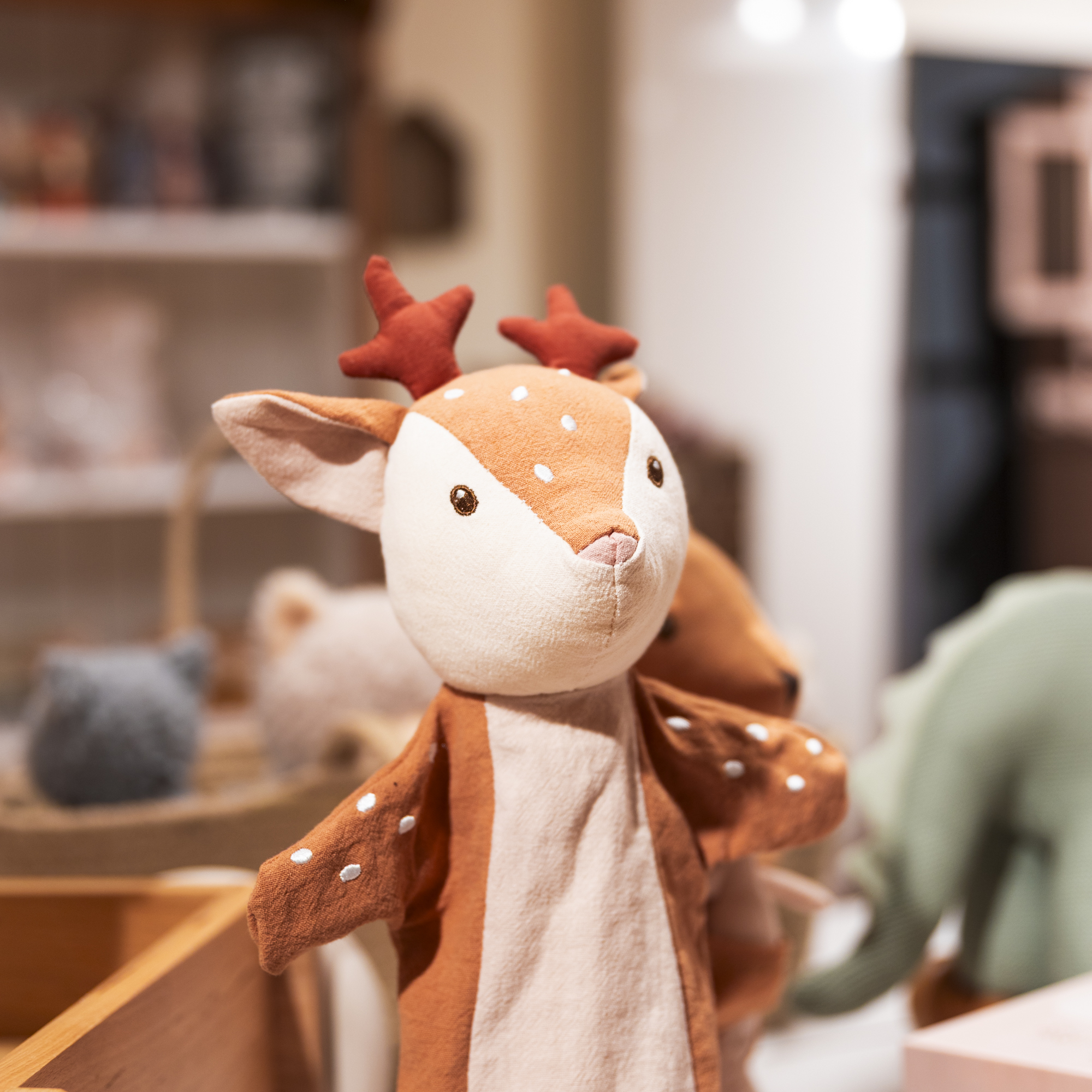 Мягкая игрушка-перчатка оленёнок от Egmont Toys превращает сказки в настоящее театральное представление у вас дома. Наденьте игрушку на руку и оживите доброго лесного героя, придумывая истории, разыгрывая сценки и общаясь с ребёнком в игровой форме.