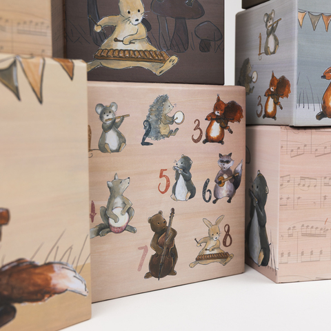 Девять чудесных кубиков от Egmont Toys с иллюстрациями животных-музыкантов от лисички до маленькой мышки. С ними можно построить целую башню, выстроить последовательность от 1 до 8 и увидеть целый оркестр, играющий на разных инструментах. Малыши с таким набором смогут учиться счету и развивать мелкую моторику. Изготовлено из качественного картона с безопасными красками и красивыми иллюстрациями, подходит для маленьких детей как для занятий дома, так и в детском саду.