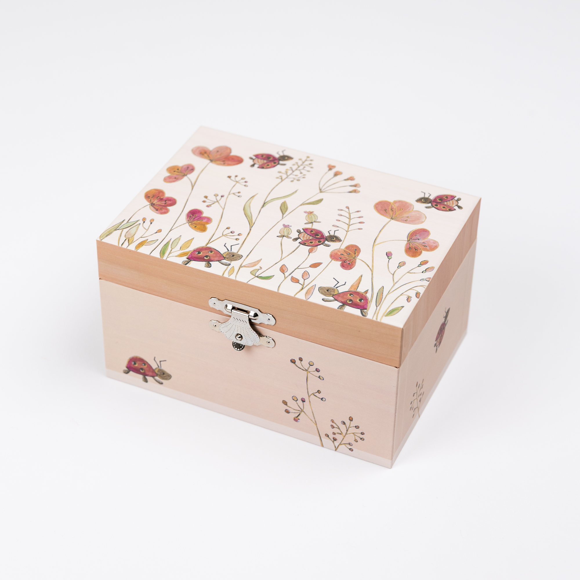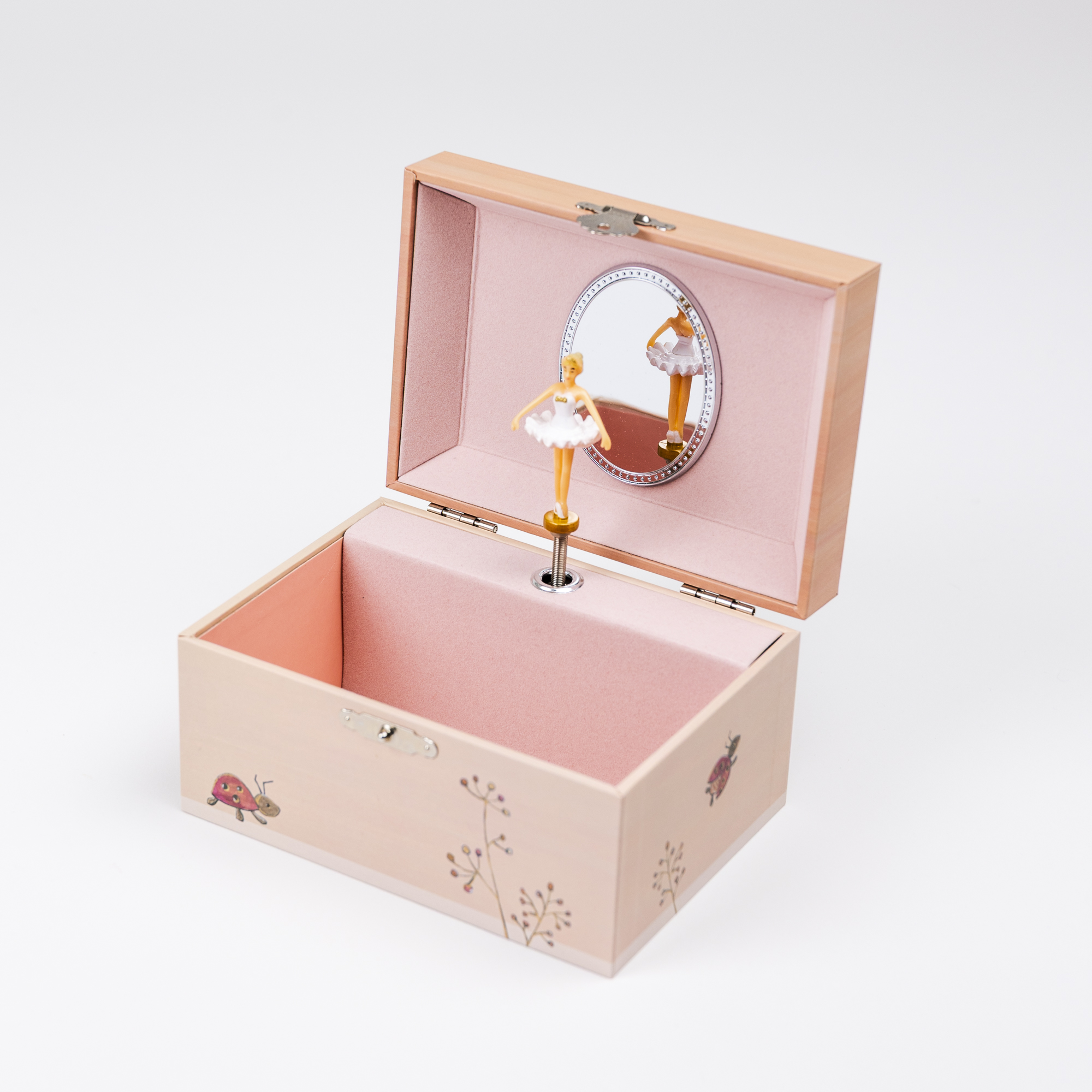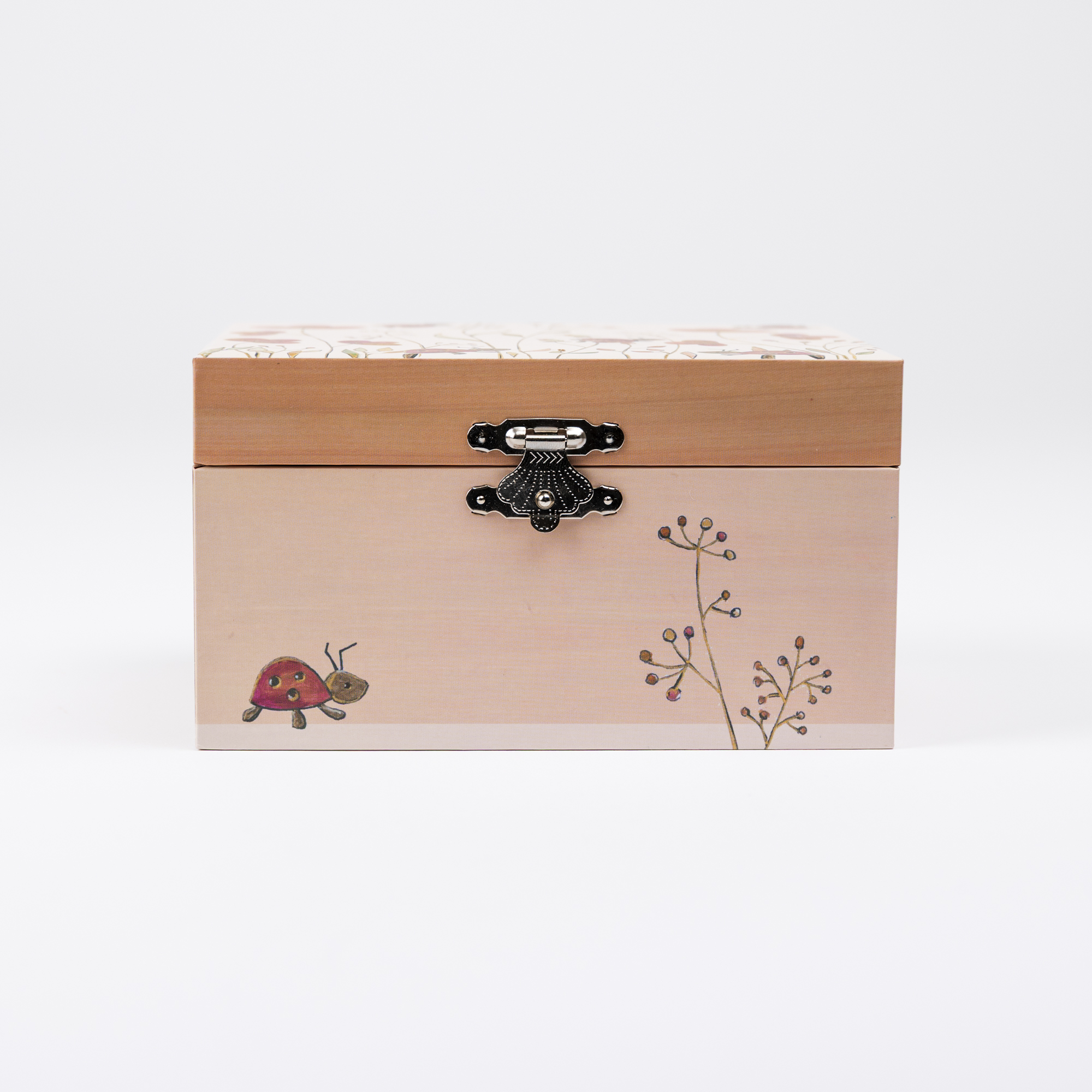 Музыкальная шкатулка Egmont Toys Божья Коровка – это очаровательная первая шкатулка для украшений и маленьких сокровищ вашего ребенка. Стоит открыть крышку, как зазвучит нежная мелодия, а внутри начинает кружиться фигурка, превращая каждый момент в маленькое волшебство. Шкатулка оформлена в мягких, теплых тонах с добрыми иллюстрациями цветов и божьих коровок, которые создают уют и чувство безопасности. Внутри есть отделение для колечек, браслетов и других мелочей, а также зеркальце, в которое так любят смотреться дети. Идеально подходит как первый «секретный» сундучок для ребенка, развивает бережное отношение к вещам и воображение. Прекрасный подарок на день рождения, Новый год или любой другой праздник, который надолго останется любимой вещью в детской комнате.