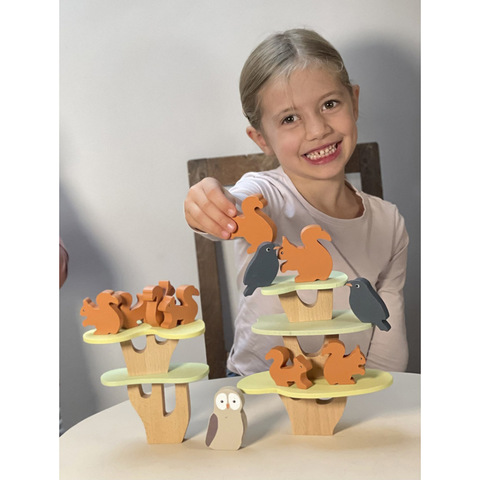 Настольная игра на баланс "Белочки" от Egmont Toys — это увлекательная деревянная игра на равновесие для детей и всей семьи. Задача игроков — аккуратно размещать маленьких белочек и другие элементы на качающемся дереве так, чтобы конструкция не перевернулась. Игра развивает мелкую моторику, координацию движений, усидчивость, логическое мышление и чувство баланса. Яркие детали и приятные на ощупь натуральные материалы делают игру безопасной и интересной для детей. Подходит для совместных игр родителей с детьми, помогает тренировать терпение и учиться аккуратности в игровой форме.