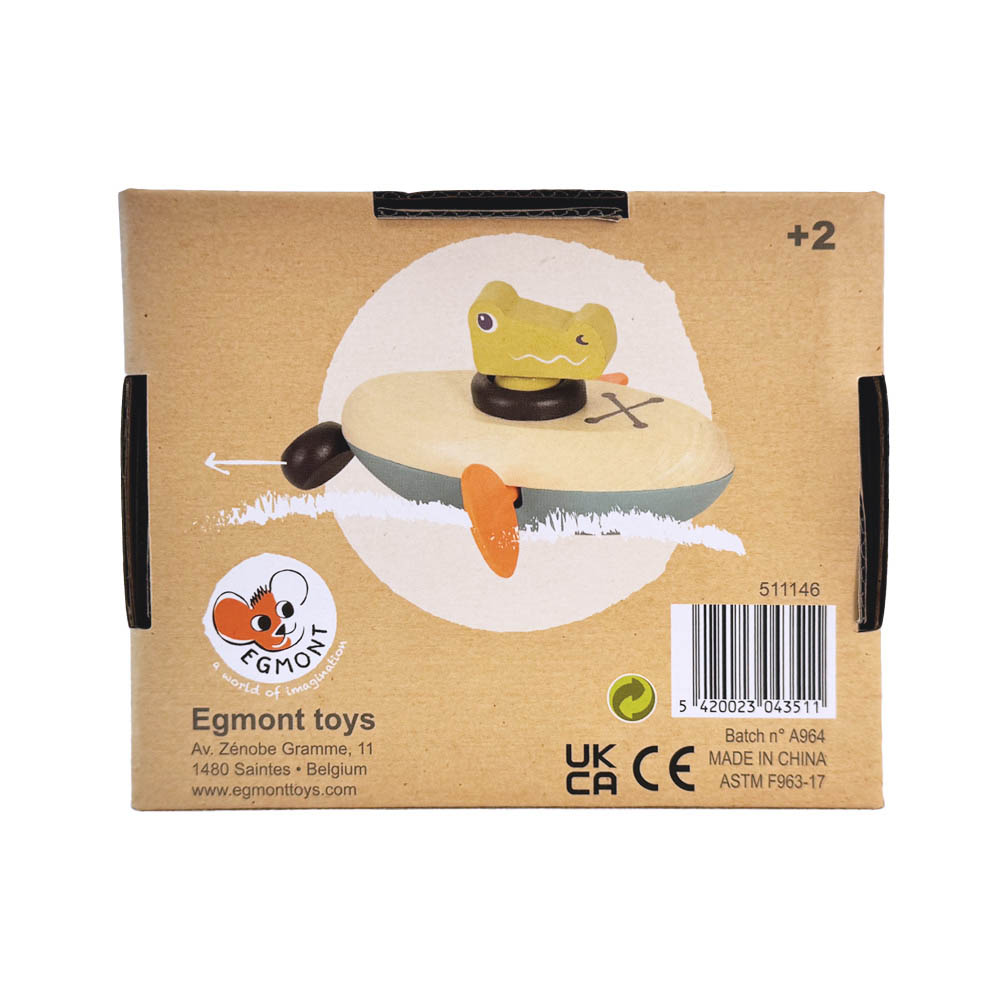Заводная лодка с крокодилом от Egmont Toys – забавная игрушка для водных игр в ванной или бассейне. Достаточно завести механизм, и лодка с веселым крокодилом поплывет сама, увлекая за собой ребенка и превращая купание в увлекательное приключение. Игрушка помогает развивать координацию движений, воображение и мелкую моторику, побуждает к сюжетным играм и не боится воды. Изготовлена из безопасных для детей материалов, удобно лежит в маленьких ручках и подходит для ежедневных игр во время купания.