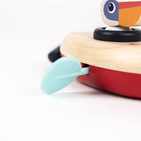 Заводная лодка с пеликаном от Egmont Toys – забавная игрушка для купания, которая превращает водные процедуры в веселую игру. Стоит завести механизм, и лодочка начинает плыть по воде, а пеликан забавно покачивается, привлекая внимание малыша. Игрушка помогает развивать координацию движений, воображение и мелкую моторику, побуждает к активной игре и первым сюжетам в ванной. Выполнена из безопасных для детей материалов с гладкими закругленными краями, удобно лежит в маленьких ручках и подходит для игр в ванной, бассейне или тазике с водой.