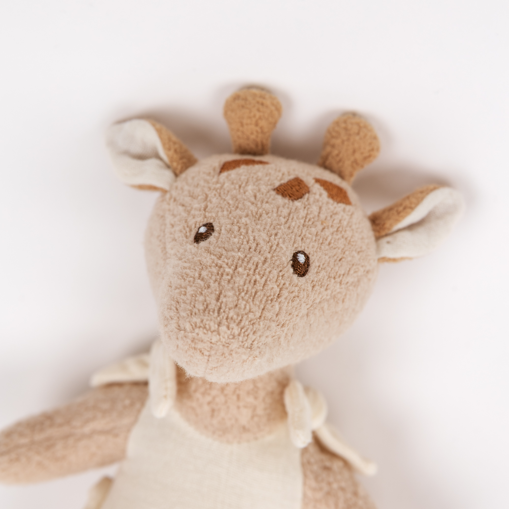 Мягкая игрушка жираф Леони от Egmont Toys с комфортером из биохлопка станет первым нежным другом малыша. Выполнена из органического хлопка, приятна на ощупь и безопасна для чувствительной кожи. Удобный платочек-комфортер помогает успокоить и расслабить ребенка, его можно использовать как любимую тряпочку для сна или объятий. Легкий вес и удобная форма позволяют малышу легко держать игрушку в ручках, развивая тактильные ощущения и мелкую моторику. Идеально подходит для новорожденных и в качестве первого подарка малышу.