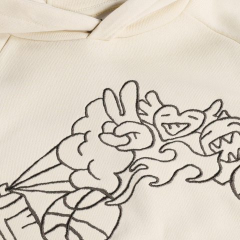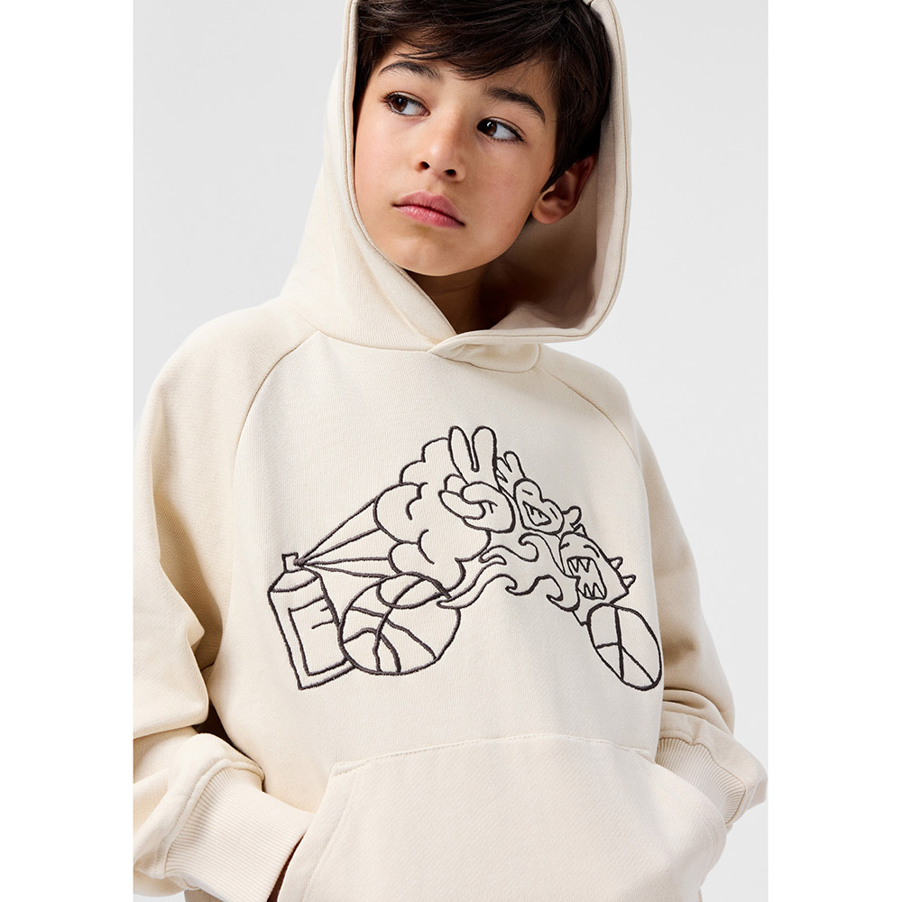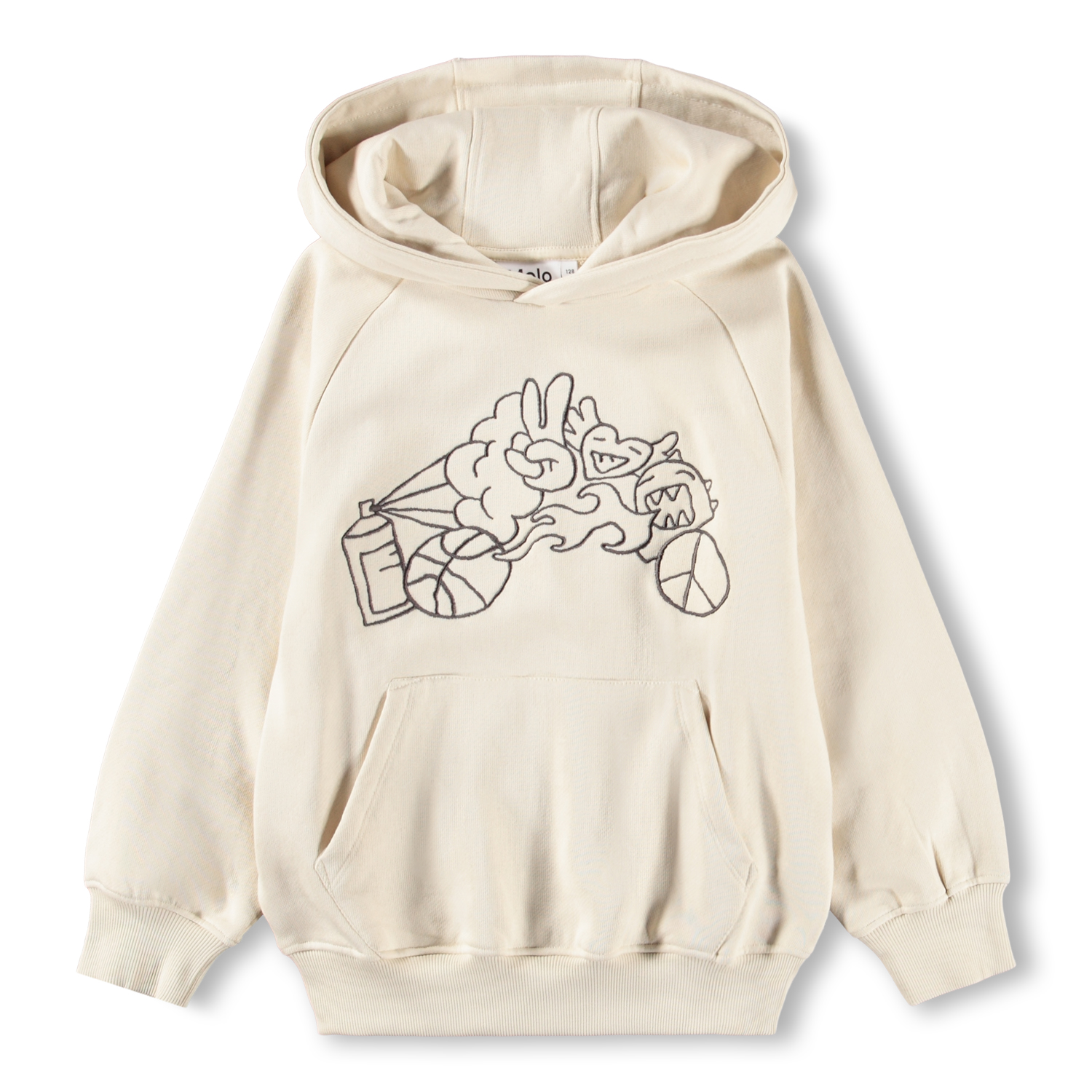 Хлопковый худи Molo молочного цвета, свободного кроя, с вышивкой в стиле граффити на груди.