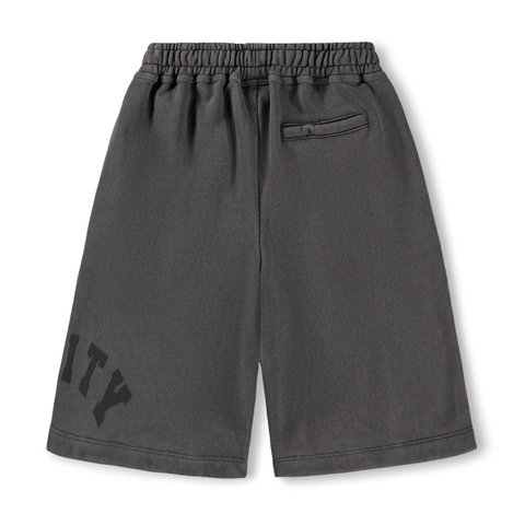 Удлиненные хлопковые спортивные шорты MOLO в универсальном графитовом цвете. Широкая резинка на поясе, боковые и задний карманы. Длина до колен. Внутри на поясе есть завязки. Сбоку принт Unity. Сочетайте с худи Mic для полного комплекта.