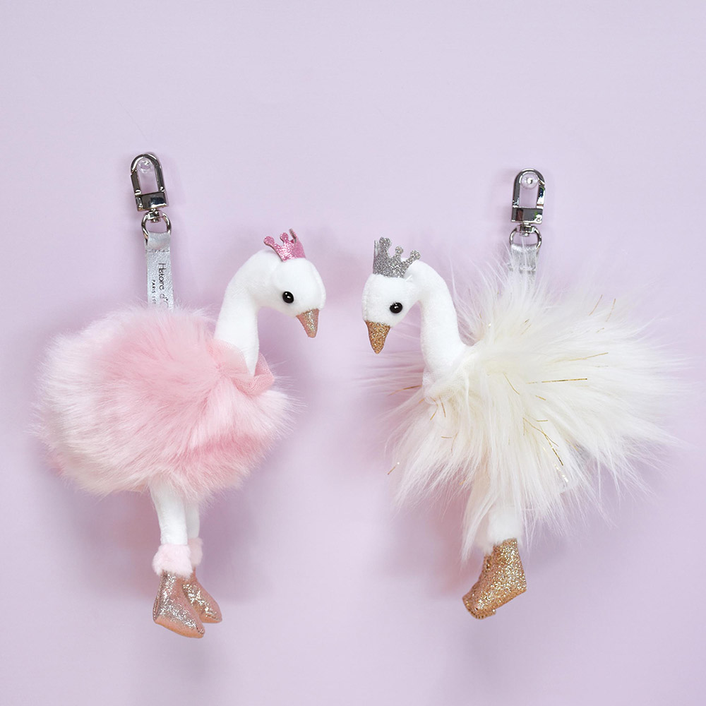Мягкая игрушка Histoire d'Ours с креплением в виде брелока - нежный лебедь в золотых ботиночках, пышной юбке-пачке и с короной на голове. Всегда будет под рукой на сумке, рюкзаке, ключах!