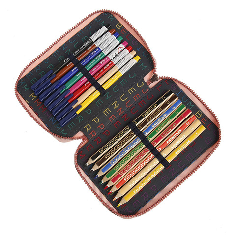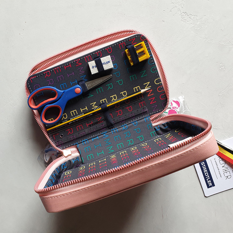 Этот пенал уже полностью укомплектован набором фломастеров, карандашей, ластиком, линейкой, простым карандашом, точилкой и ножницами - все немецкой фирмы Staedtler.