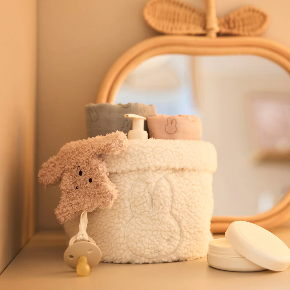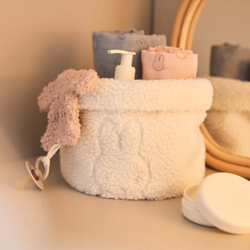 Стильная и практичная корзина Jollein для пеленального столика в цвете слоновой кости с зайчиком Miffy поможет поддерживать порядок в детской. В ней удобно хранить подгузники, салфетки, кремы и другие необходимые мелочи, чтобы всё было под рукой во время пеленания малыша. Мягкий текстиль приятен на ощупь и безопасен для ребёнка, а нейтральный оттенок легко впишется в любой интерьер. Корзина хорошо держит форму, её можно ставить на пеленальный столик, комод или полку и при необходимости легко переставлять. Идеальное решение для организованного и уютного уголка ухода за ребёнком.