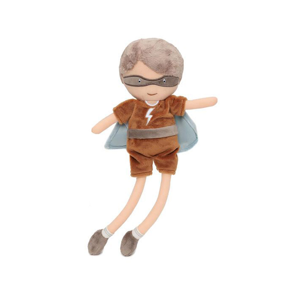 Мягкая кукла Супергерой Дэйв от Jollein станет любимым другом вашего ребенка для игр и объятий. Кукла выполнена из мягких, приятных на ощупь материалов, безопасных для детской кожи, и подходит для обнимашек с самого раннего возраста. У Дэйва забавный образ супергероя с маской и плащом, который помогает развивать воображение и придумывать увлекательные истории. Компактный размер 32 см удобен для маленьких ручек, куклу легко брать с собой в коляску, в поездку или в детский сад. Игры с мягкой куклой помогают ребенку развивать эмоциональный интеллект, чувство заботы и социальные навыки, а также дарят ощущение безопасности и комфорта во время сна и отдыха.