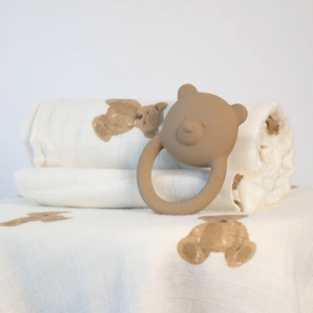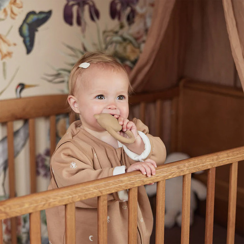 Прорезыватель Jollein в форме мишки изготовлен из 100% натурального каучука и безопасен для малышей с самого раннего возраста. Мягкий, но упругий материал помогает аккуратно массировать десны и облегчать зуд при прорезывании зубов. Удобная форма и легкий вес позволяют крохе легко держать игрушку в маленьких ручках, а рельефная поверхность стимулирует тактильные ощущения и развитие мелкой моторики. Прорезыватель не содержит BPA, ПВХ и фталатов, подходит для ежедневного использования и прост в уходе: его можно просто промывать теплой водой с мягким мылом. Идеальный первый помощник в период прорезывания зубов и приятная безопасная игрушка для малыша.