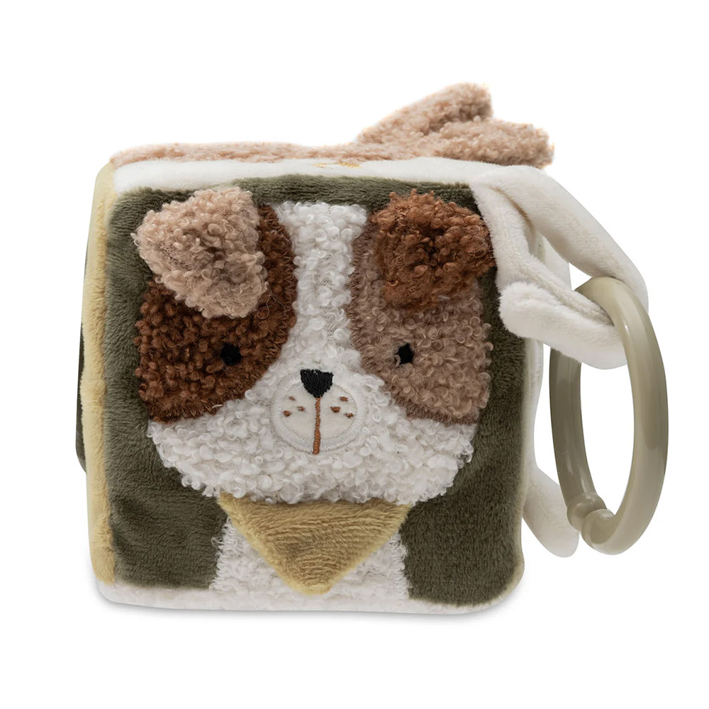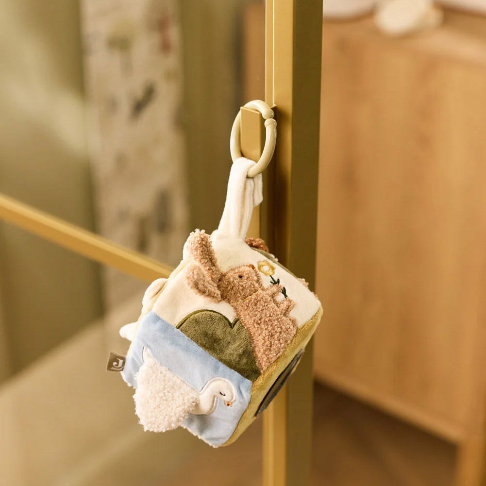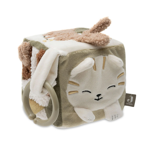 Мягкая развивающая игрушка Jollein «Котики – Собачки» создана для самых маленьких и помогает стимулировать зрение, слух и тактильные ощущения ребенка. На кубике есть разные по фактуре материалы, шуршащие элементы, безопасное зеркальце и погремушки, которые побуждают малыша тянуться, хватать и изучать игрушку. Контрастные цвета и забавные мордочки котиков и собачек привлекают внимание и удерживают интерес, способствуя развитию координации движений и мелкой моторики. Игрушку удобно брать с собой в коляску, кроватку или автокресло, она легко крепится и не занимает много места. Изготовлена из безопасных, гипоаллергенных материалов, подходит для детей с первых месяцев жизни.