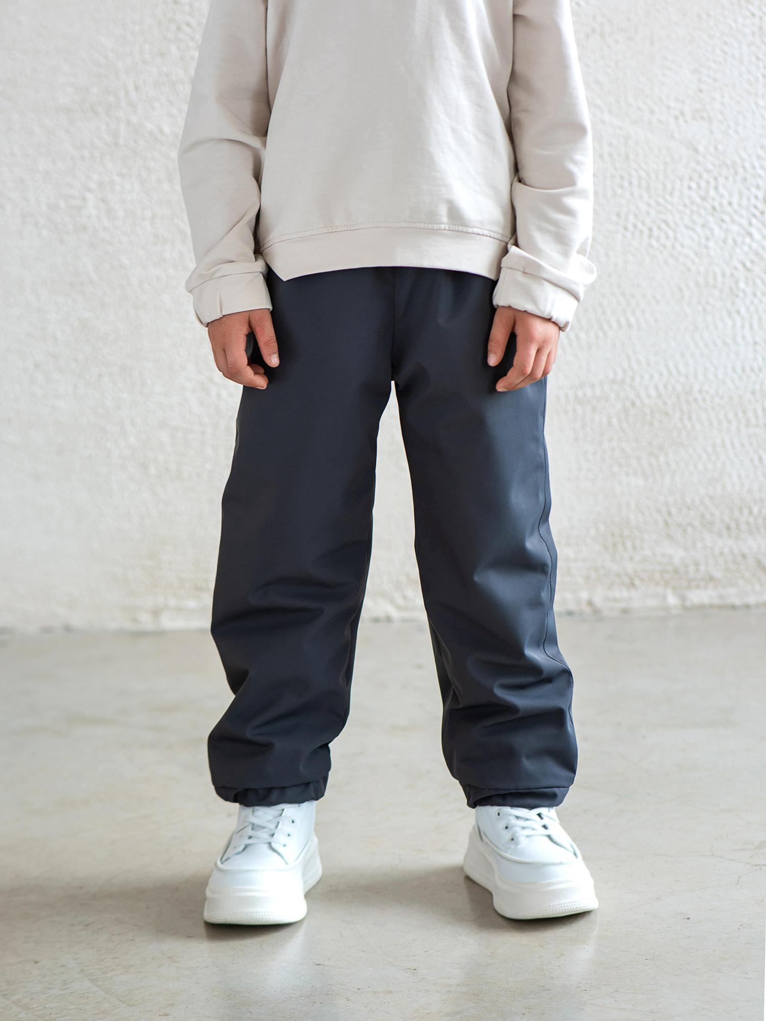Штаны выполнены из мембранной ткани с приятной на ощупь текстильной поверхностью в "рубчик", как и утепленные куртки из этой коллекции.