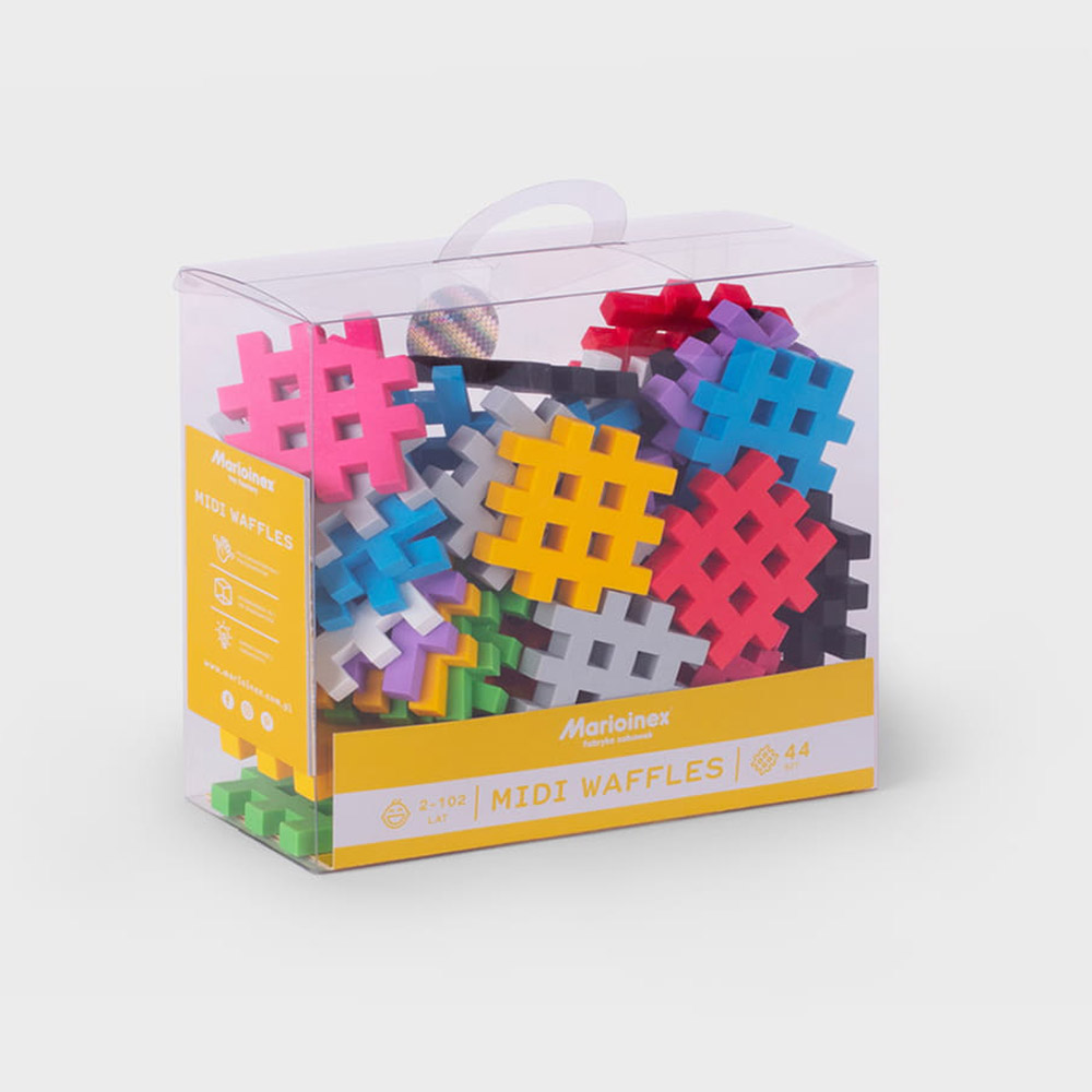Marioinex создают конструкторы для детей от 2 лет. Благодаря уникальной форме деталей в виде «вафельных» квадратов, элементы легко соединяются и позволяют ребёнку строить устойчивые, объёмные конструкции. Эти наборы развивают мелкую моторику, воображение и пространственное мышление. Крупные, приятные на ощупь элементы изготовлены из мягкого и безопасного пластика с резиноподобной текстурой, полностью безопасны для детского здоровья. Классический вафельный блок имеет 10 выступов и 4 отверстия, эти соединения позволяют создавать фантастические, прочные конструкции как в 2D, так и в 3D формате. Игрушки также имеют все необходимые сертификаты, которые гарантируют не только приятную, но и безопасную игру.