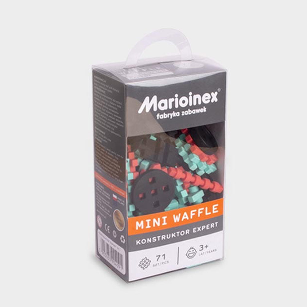 Marioinex создают конструкторы для детей от 2 лет. Благодаря уникальной форме деталей в виде «вафельных» квадратов, элементы легко соединяются и позволяют ребёнку строить устойчивые, объёмные конструкции. Эти наборы развивают мелкую моторику, воображение и пространственное мышление. Крупные, приятные на ощупь элементы изготовлены из мягкого и безопасного пластика с резиноподобной текстурой, полностью безопасны для детского здоровья. Классический вафельный блок имеет 10 выступов и 4 отверстия, эти соединения позволяют создавать фантастические, прочные конструкции как в 2D, так и в 3D формате. Игрушки также имеют все необходимые сертификаты, которые гарантируют не только приятную, но и безопасную игру.