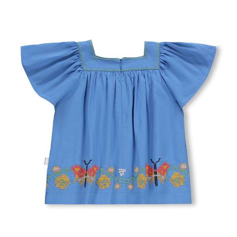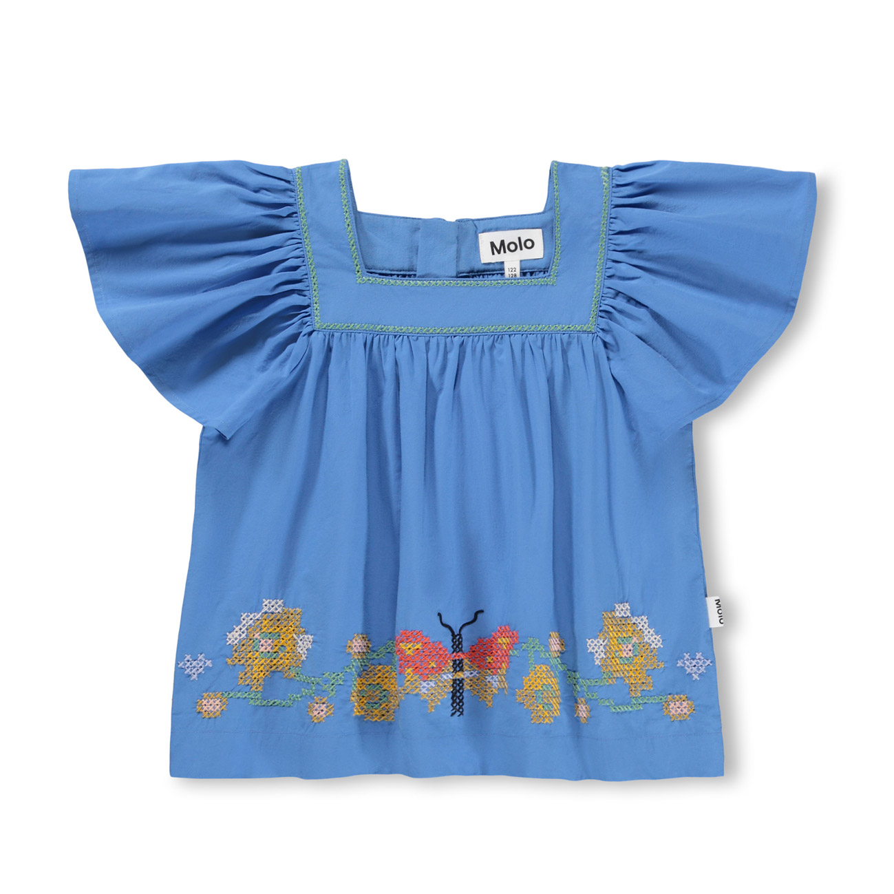 Элегантная и красивая блузка Molo, украшенная вышивкой крестиком и рукавами-бабочками. Застегивается сзади на молнию.