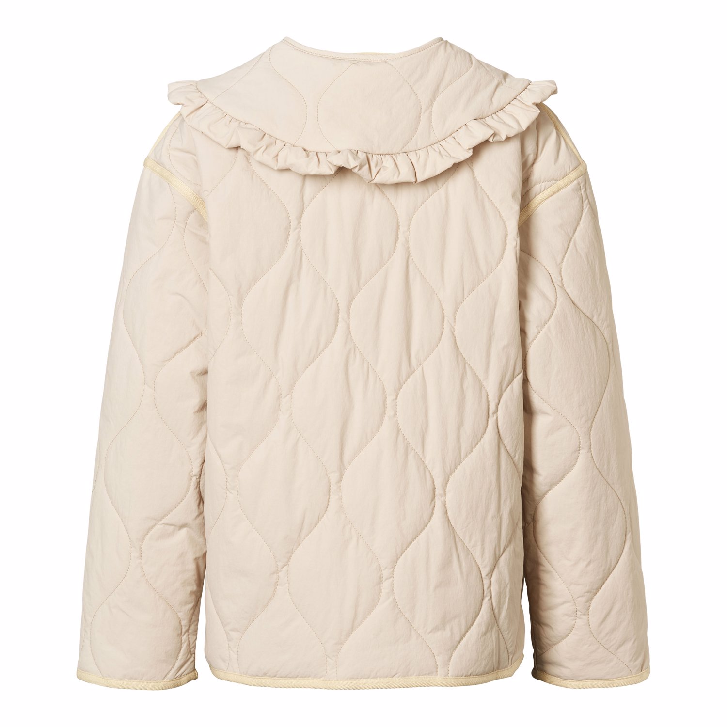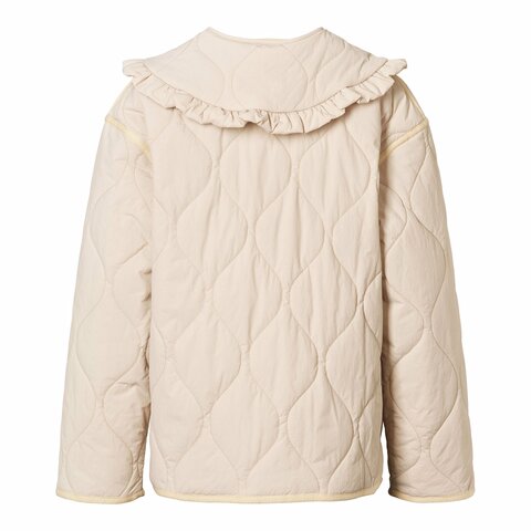 Стеганая куртка Molo в нежном молочном оттенке с романтичным воротничком. Застегивается на кнопки, есть боковые карманы. Обработана водоотталкивающей пропиткой.