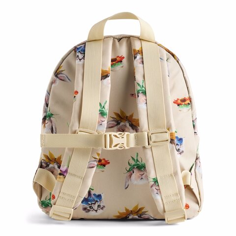 Небольшой рюкзак Molo с чудесным принтом. Одно отделение и внешний карман на молнии легко вместят бутылочку воды, перекус, карандаши, ланч-бокс и сменную одежду. Плотные мягкие лямки, усиленная спинка и застежки на груди гарантируют комфорт для ребенка и правильно распределяют вес по телу.