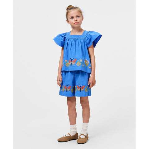 Элегантные шорты Molo в нежном голубом цвете. Украшены вышивкой крестиком. Пояс частично на резинке (по спинке). Сочетайте с блузкой для полного комплекта.