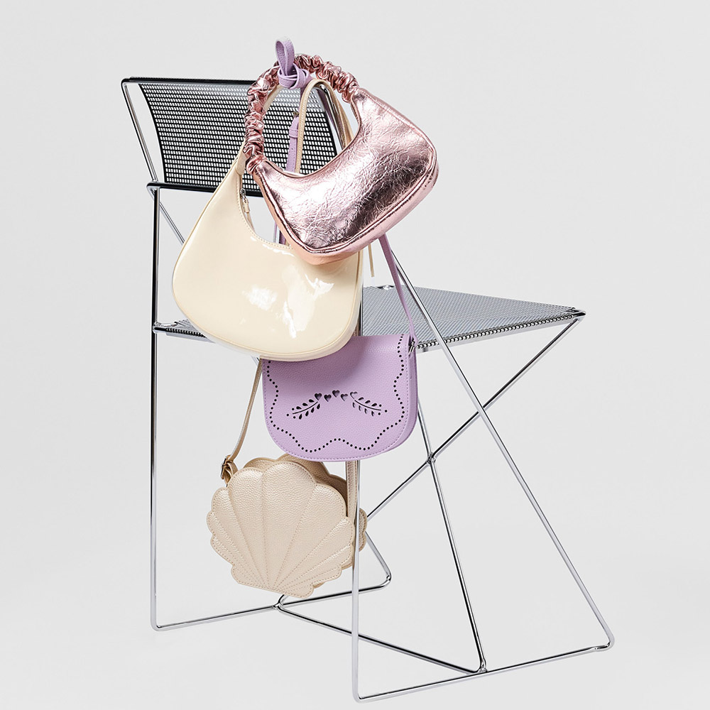 Сумка Molo с блестящим покрытием под розовое золото. Застегивается на молнию.