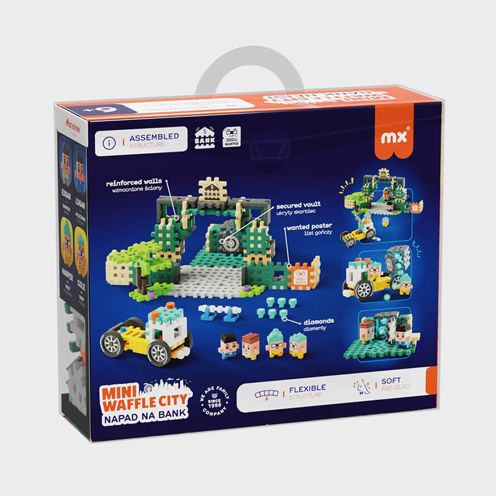 Marioinex создают конструкторы для детей от 2 лет. Благодаря уникальной форме деталей в виде «вафельных» квадратов, элементы легко соединяются и позволяют ребёнку строить устойчивые, объёмные конструкции. Эти наборы развивают мелкую моторику, воображение и пространственное мышление. Крупные, приятные на ощупь элементы изготовлены из мягкого и безопасного пластика с резиноподобной текстурой, полностью безопасны для детского здоровья. Классический вафельный блок имеет 10 выступов и 4 отверстия, эти соединения позволяют создавать фантастические, прочные конструкции как в 2D, так и в 3D формате. Игрушки также имеют все необходимые сертификаты, которые гарантируют не только приятную, но и безопасную игру.