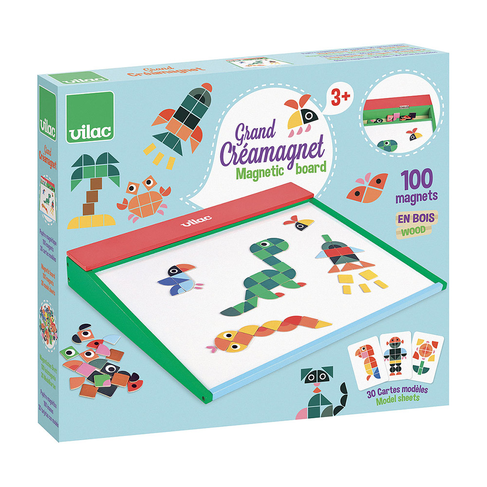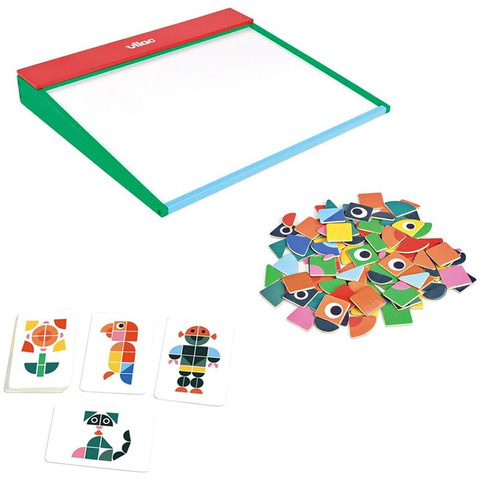 Яркая магнитная настольная игра от Vilac для развития логики, внимания и воображения ребенка, в которой нужно составлять забавные картинки и сюжеты из магнитных элементов. Игра помогает тренировать мелкую моторику, усидчивость и концентрацию, знакомит с формами и цветами, стимулирует творческое мышление. Удобный формат позволяет брать игру в дорогу, все детали надежно крепятся к магнитной основе и не теряются. Подходит для совместных игр родителей с детьми, способствует общению и развитию речи, превращая обучение в увлекательное занятие
