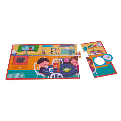 Набор из 4 крупных пазлов Дом XL от Apli Kids. Крупные плотные детали удобно держать маленьким ручкам, они легко соединяются и не мнутся, развивая мелкую моторику, внимание и логическое мышление. Собирая картинку, ребенок тренирует усидчивость и наблюдательность, учится сопоставлять части и целое, а также расширяет словарный запас, обсуждая с родителями, что происходит на иллюстрации. Яркие безопасные краски и качественный картон делают пазл долговечным и подходящим для многократных игр дома и в детском саду