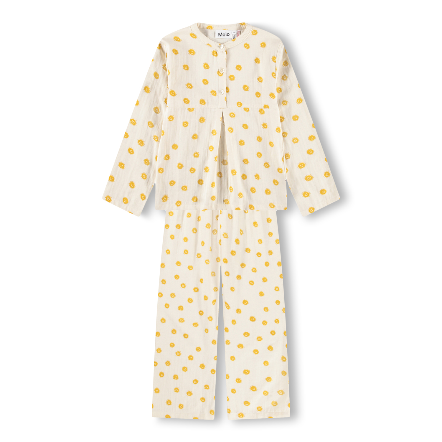 Муслиновая пижама MOLO с рубашкой и штанишками с солнечным принтом. Романтичный и комфортный фасон.
