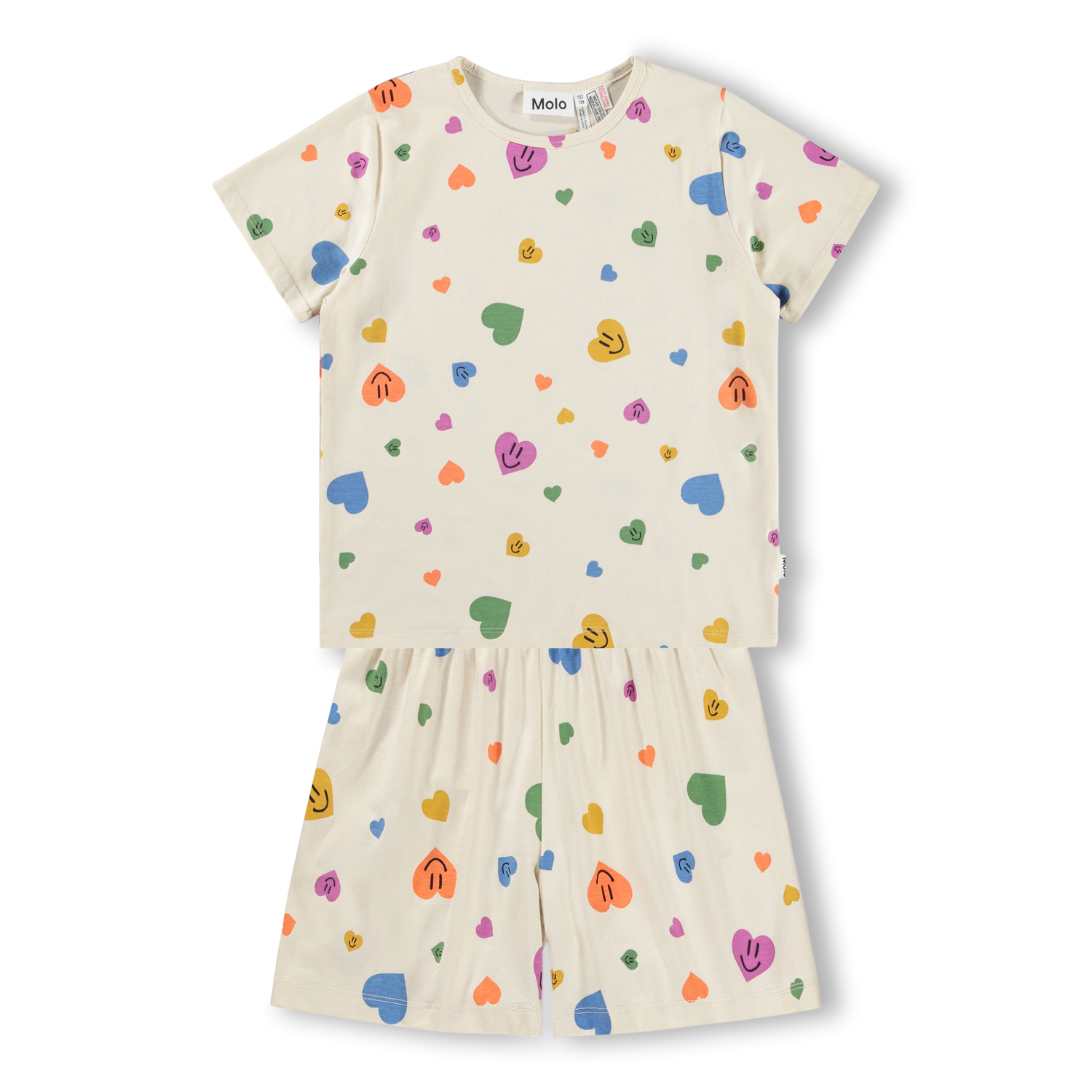 Трикотажная пижама MOLO с футболкой и шортиками с разноцветными сердечками.