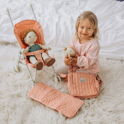 Очаровательная коляска для кукол Olli Ella в пастельно-розовом цвете создана специально для маленьких заботливых родителей. Легкая и удобная, она идеально подходит для прогулок дома и на улице, помогает играть в сюжетно-ролевые игры, заботу и участвует в развитии воображения ребенка. Прочная металлическая рама и устойчивые колеса обеспечивают надежность, а хлопковая тканевая часть легко снимается для чистки. Коляска складывается для компактного хранения и транспортировки (чехол идет в комплекте), ее удобно брать с собой в поездки или на прогулку. Подходит для большинства кукол и мягких игрушек, станет любимым аксессуаром в детских играх и стильным дополнением детской комнаты