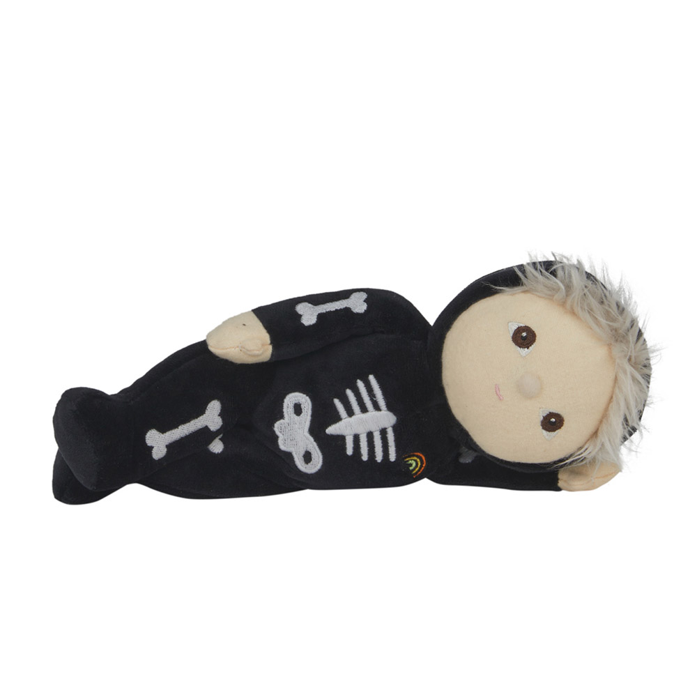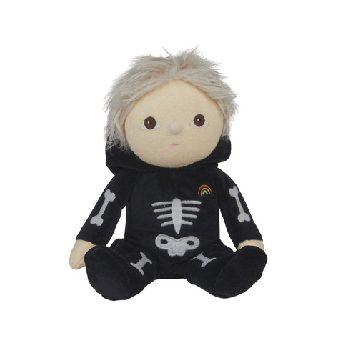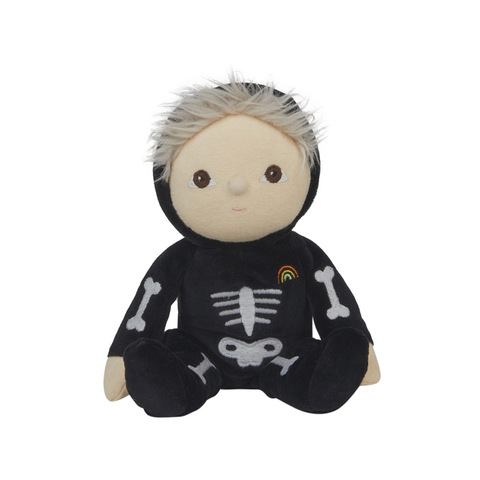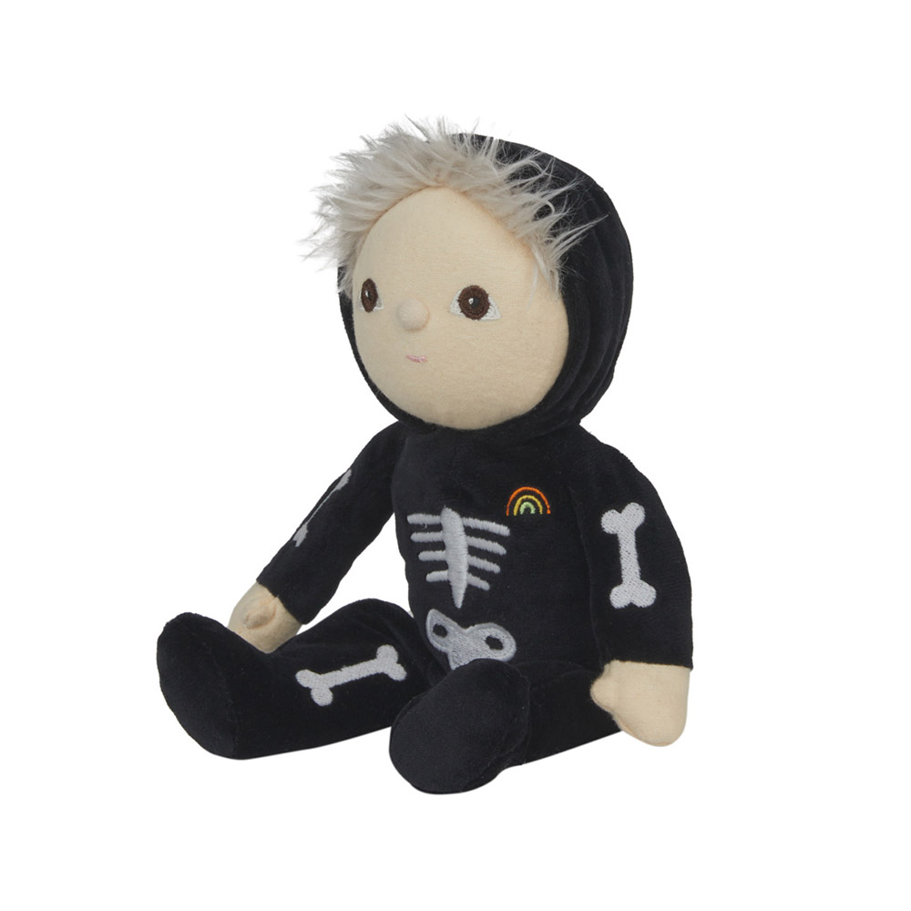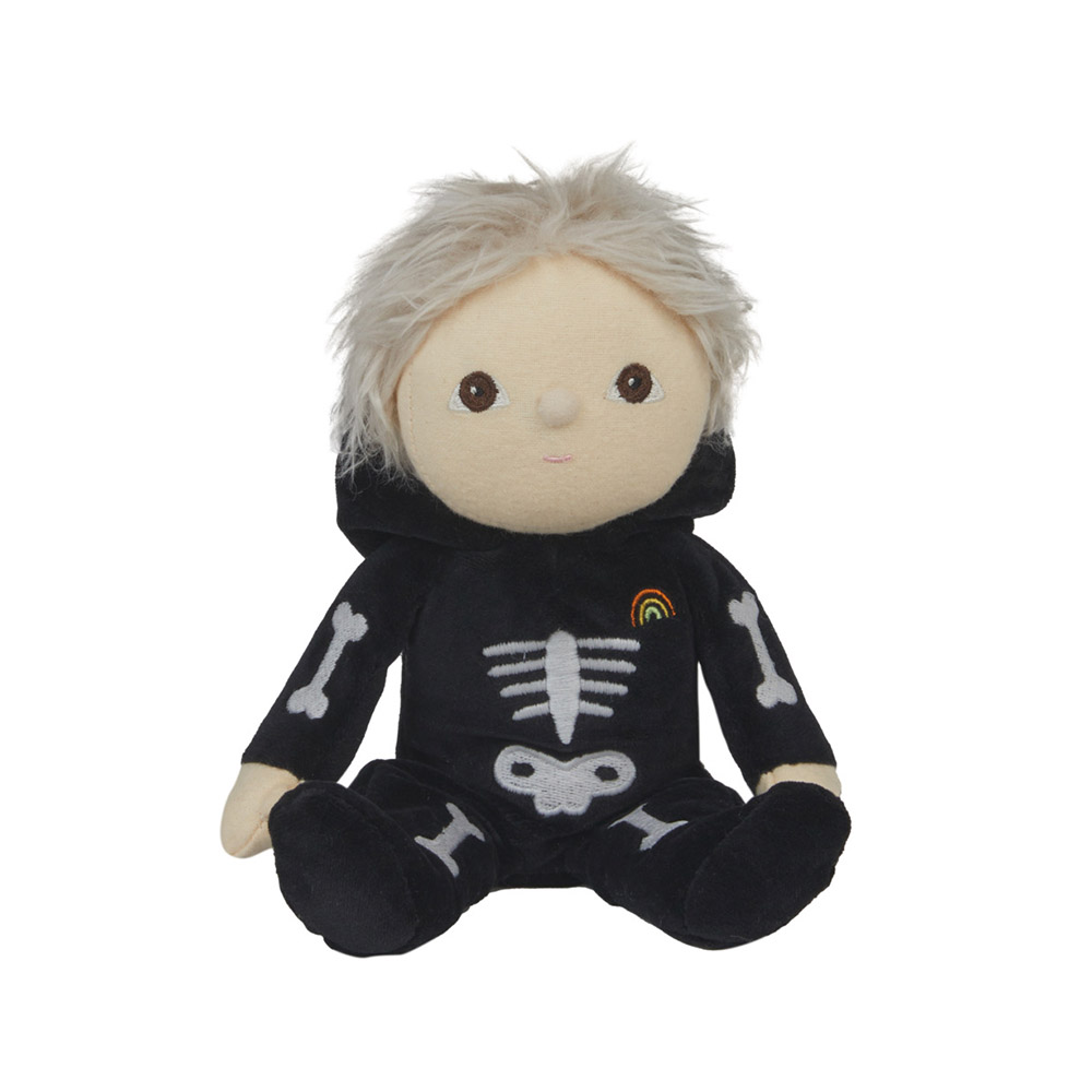 Познакомьтесь со Скалли — мягкой куклой-скелетом от Olli Ella, которая совсем не страшная, а очень милая и уютная. Эта забавная куколка создана специально для детей: у неё мягкое текстильное тело, приятное на ощупь, без жёстких деталей, поэтому с ней комфортно спать, обнимать и играть весь день.
