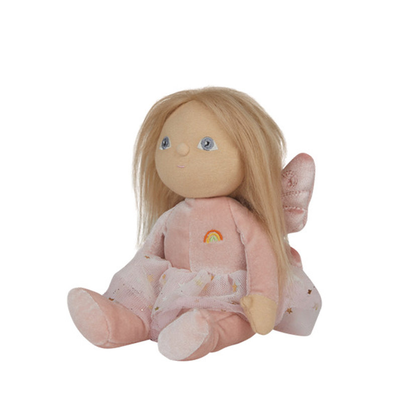 Мягкая кукла-фея Фиона от Olli Ella — это нежная текстильная подружка для игр и объятий. У Фионы мягкое тельце, крылышки феи и аккуратные вышитые черты лица, поэтому она безопасна даже для самых маленьких детей. Куклу удобно держать маленькими ручками, брать с собой на прогулку, в поездки или укладывать спать вместе с ребёнком. Натуральные на ощупь материалы, спокойные пастельные оттенки и продуманный дизайн развивают тактильные ощущения и воображение. Фиона станет первой любимой куклой, нежным другом и красивым подарком для ребёнка.
