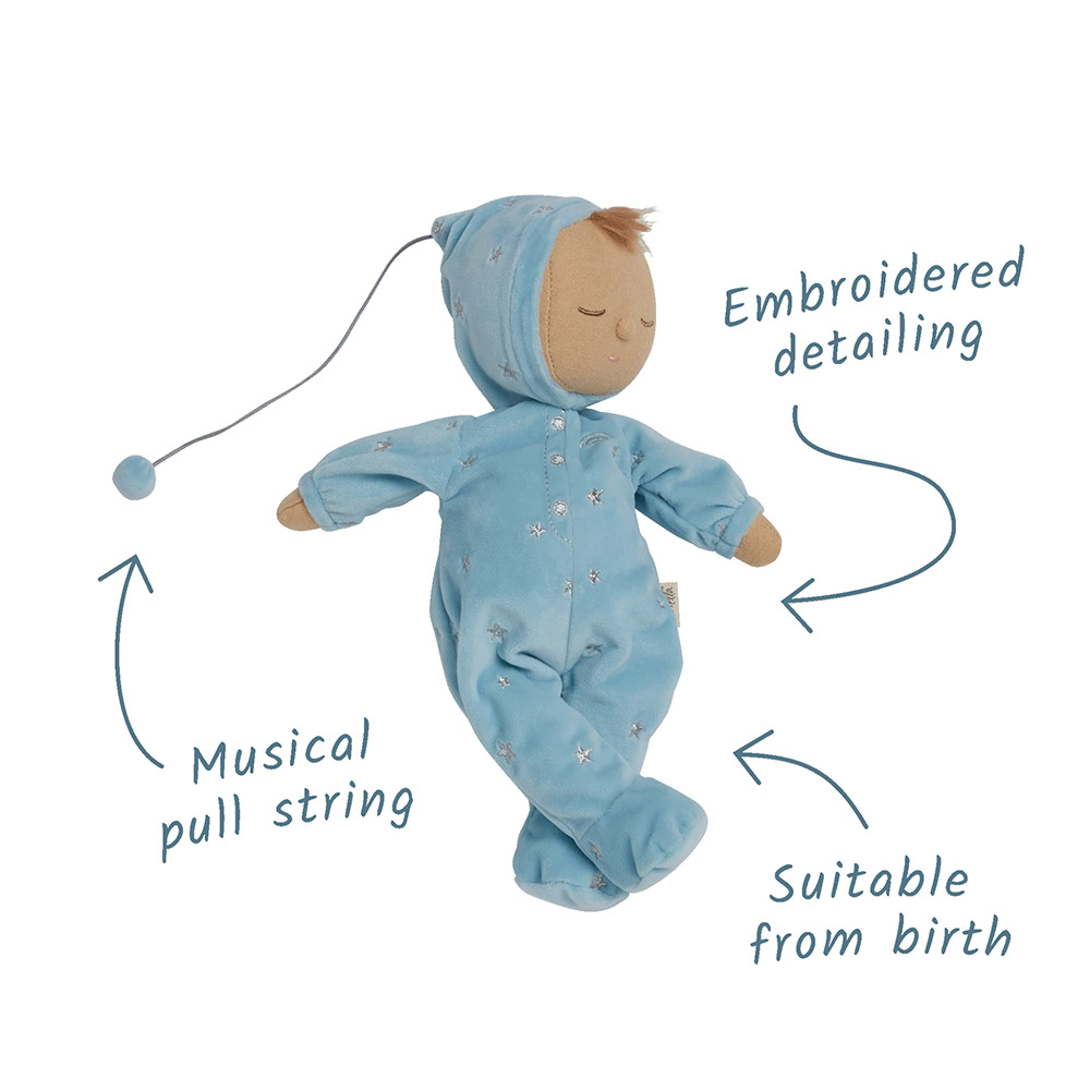 Мягкая музыкальная кукла Olli Ella создана специально для спокойных игр и нежного засыпания. Ее приятно обнимать, она легкая и уютная на ощупь, поэтому ребенок с радостью будет брать куклу с собой в кроватку, в коляску или в дорогу. Внутри спрятан музыкальный механизм с успокаивающей мелодией, которая помогает малышу расслабиться и настроиться на сон. Надо только потянуть за веревочку на капюшоне, и колыбельная включится. Спокойные тона и доброжелательное выражение лица не перегружают ребенка лишними впечатлениями, а компактный размер удобен для маленьких ручек. Кукла изготовлена из качественных, безопасных для детей материалов, подходит для ежедневных объятий и игр, помогает развивать эмоциональное восприятие, чувство заботы и формирует у малыша собственный ритуал отхода ко сну.