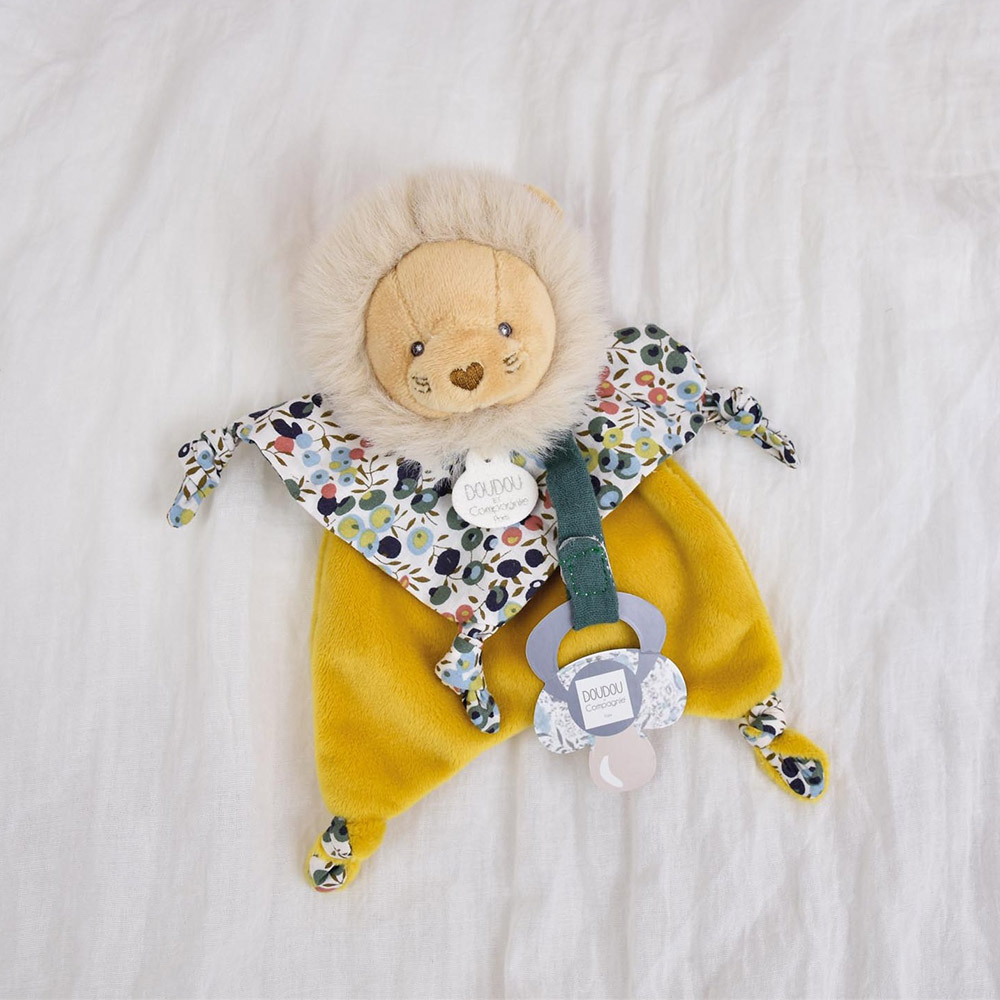 Мягкий лев (комфортер) Doudou et Compagnie высотой 20 см станет нежным другом для малыша с первых дней жизни. Игрушка выполнена из очень мягкого, приятного на ощупь плюша, безопасных гипоаллергенных материалов и не содержит мелких деталей. У льва есть мягкое крепление для пустышки, чтобы она всегда была под рукой. Игрушка легкая, удобная для маленьких ручек, подходит для объятий, игр и спокойного засыпания. Поставляется в красивой подарочной коробке, идеально подходит для подарка на рождение, крестины или день рождения ребенка.