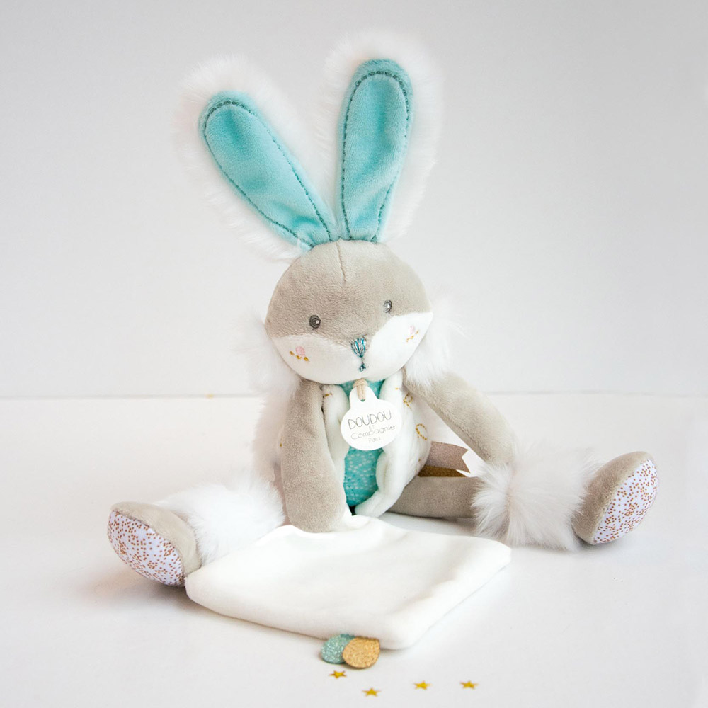Мягкий зайчик Doudou et Compagnie высотой 30 см станет нежным другом для малыша с первых дней жизни. Игрушка выполнена из очень мягкого, приятного на ощупь плюша, безопасных гипоаллергенных материалов и не содержит мелких деталей. К ее лапке приделан нежный платочек, чтобы процесс укладывания и засыпания был еще комфортнее. Зайчик легкий, удобный для маленьких ручек, подходит для объятий, игр и спокойного засыпания. Поставляется в красивой подарочной коробке, идеально подходит для подарка на рождение, крестины или день рождения ребенка.