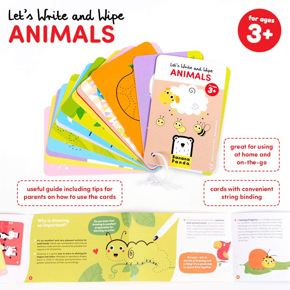 Набор многоразовых обучающих карточек Banana Panda с заданиями про животных поможет ребенку в игровой форме развивать внимание, память, речь и логическое мышление. Яркие иллюстрации знакомят с разнообразными животными, их внешним видом и особенностями, а простые и понятные задания побуждают рассматривать, сравнивать, находить отличия и отвечать на вопросы. Карточки выполнены из плотного картона с покрытием, по которому можно рисовать маркером и стирать, поэтому ребенок может выполнять задания снова и снова, не боясь ошибок. Игра отлично подходит для занятий дома и в дороге, помогает ненавязчиво подготовить малыша к детскому саду и школе, расширяет словарный запас и кругозор, а также дарит время для совместного общения родителей с ребенком.
