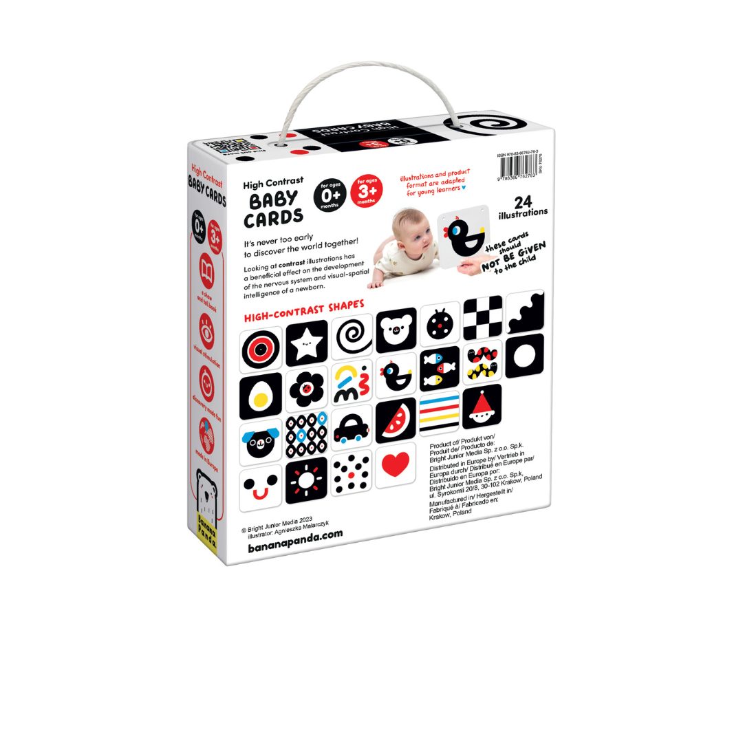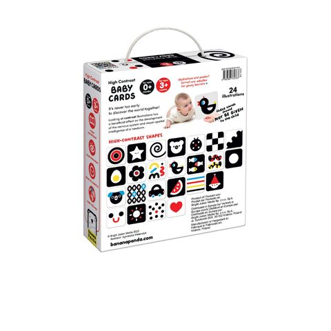 Набор контрастных карточек Banana Panda для самых маленьких помогает стимулировать зрение и развитие мозга новорожденного. Четкие черно-белые и красные изображения привлекают внимание малыша, тренируют фокусировку и концентрацию. Карточки можно показывать ребенку с первых недель жизни во время бодрствования, использовать на пеленальном столике, в кроватке или коляске. Плотный картон с безопасными закругленными краями, удобный формат и яркие иллюстрации делают занятия приятными и полезными как для малыша, так и для родителей.