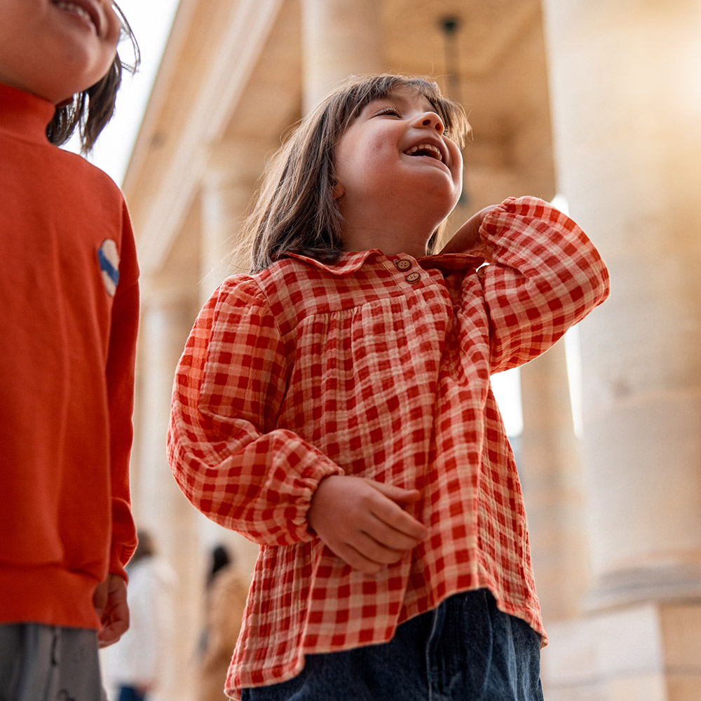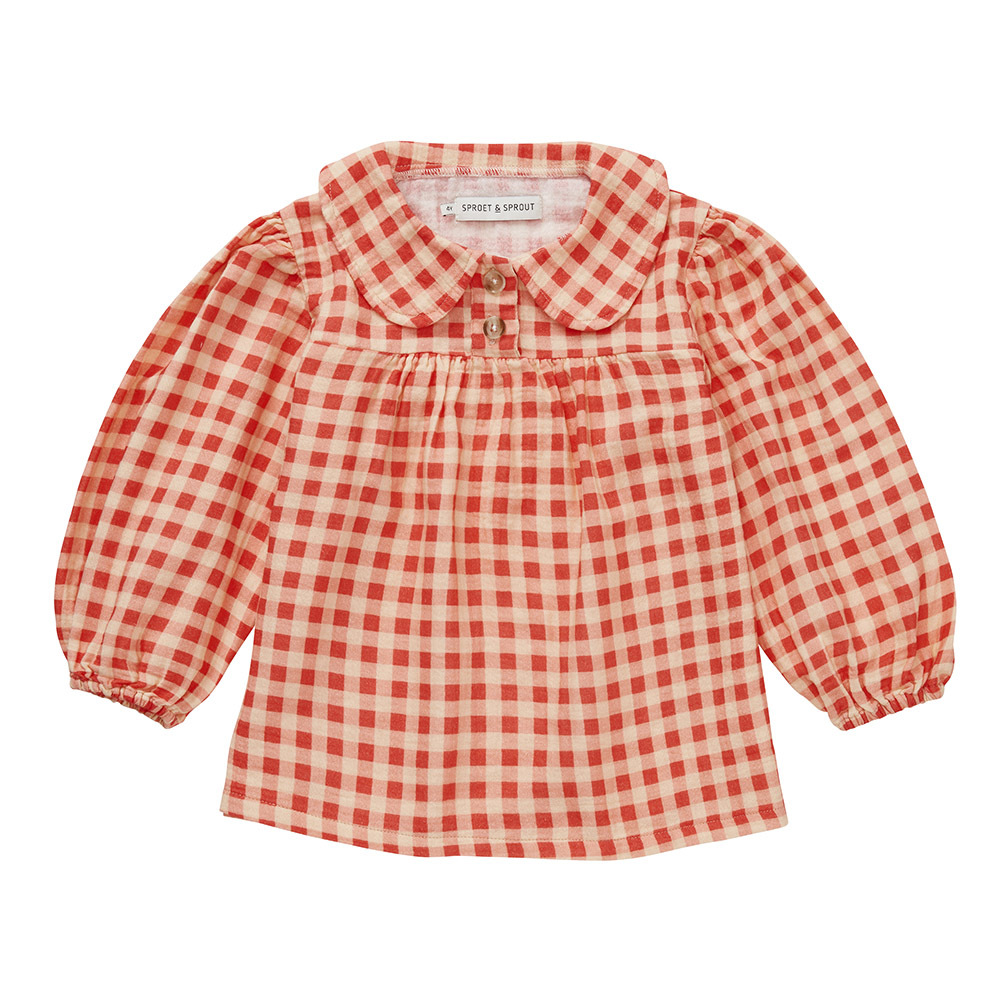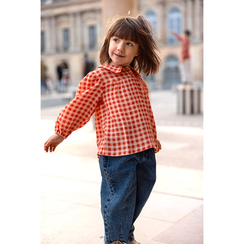 Чудесная блузка Sproet&Sprout в яркую клеточку. Мягкая, из хлопкового муслина, с питерпеновским воротничком и французским настроением.