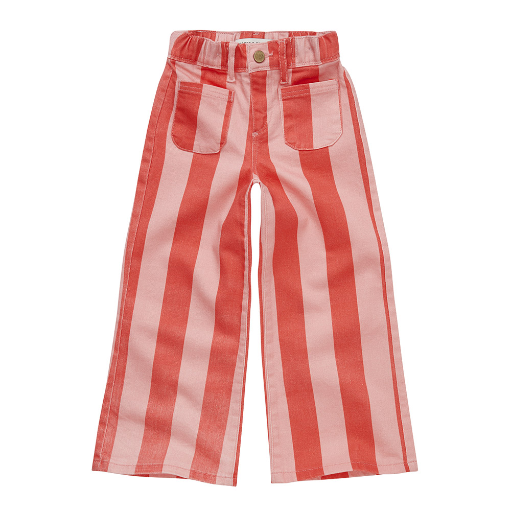 Хлопковые расклешенные джинсы от Sproet&Sprout в полоску. Пояс изнутри регулируется. Эластичный материал, карманы спереди.