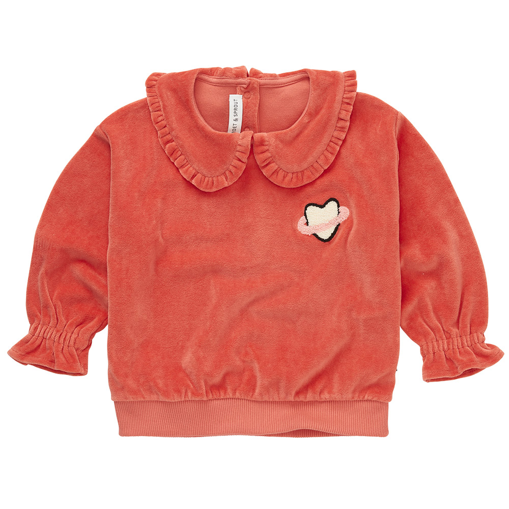 Хлопковый свитшот Sproet&Sprout из велюра с романтичным воротничком и деталями на рукавах.