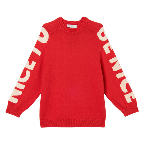 Джемпер Stella McCartney Kids красного цвета с текстом Nice to be nice на рукавах.