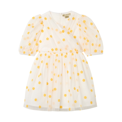 Чудесное нарядное платье Stella McCartney Kids из нежного фатина с цветочной вышивкой. Пышные рукава и много складочек.