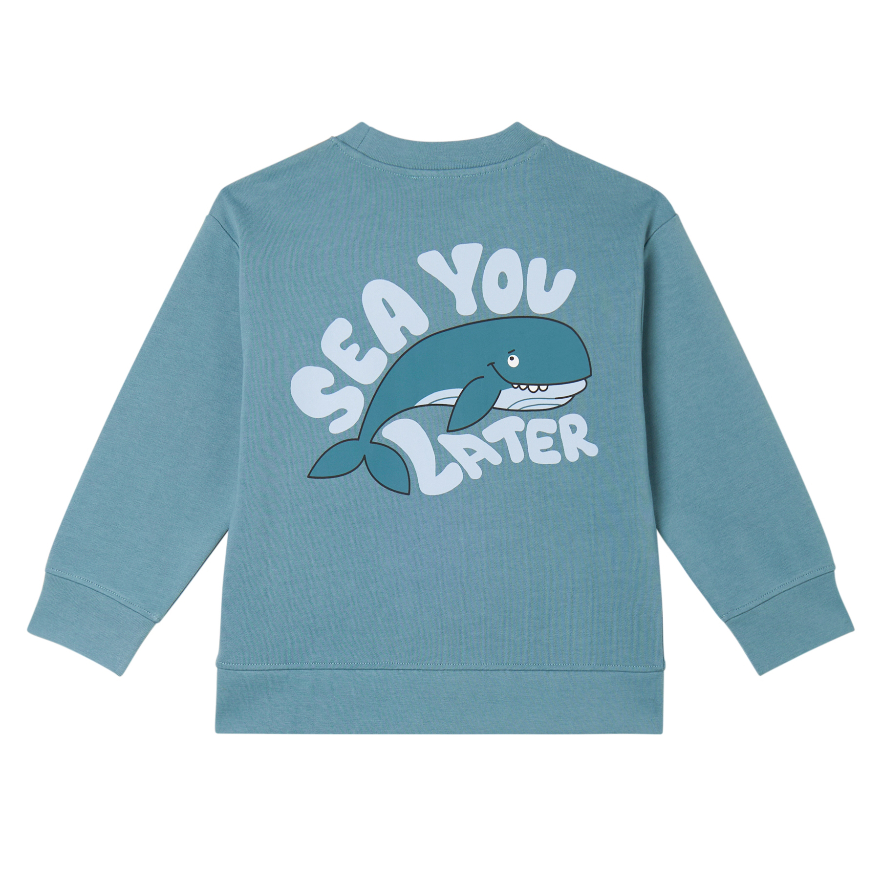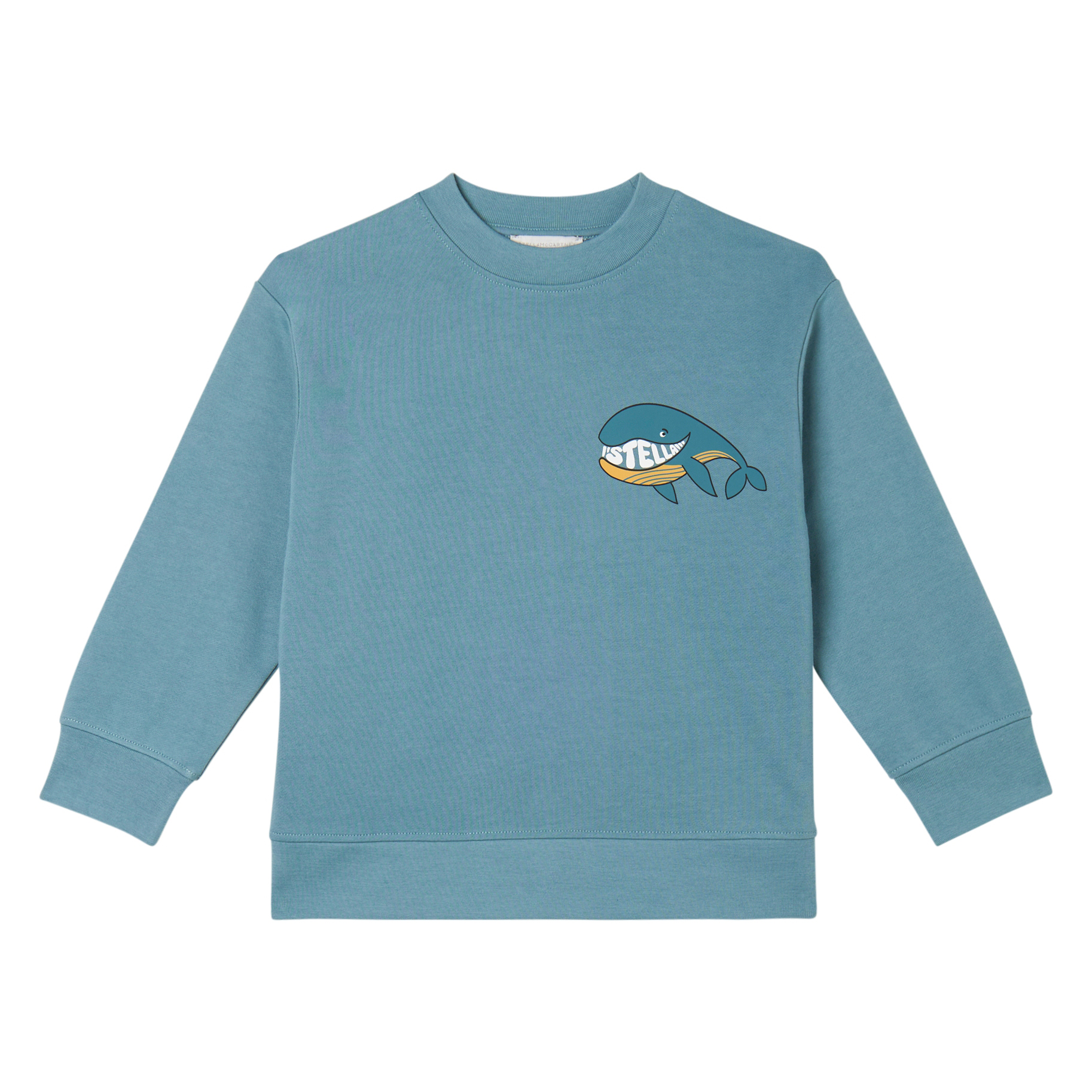 Свитшот Stella McCartney Kids голубого цвета с китом на груди и большим принтом на спинке.