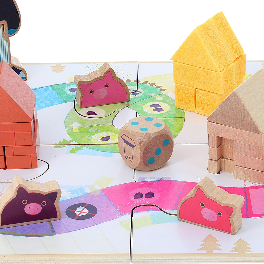 Деревянная игра по мотивам сказки "Волк и три поросенка" от Vilac помогает ребенку в игровой форме развивать логику, внимание и мелкую моторику. В набор входят ярко раскрашенные фигурки поросят, волка и элементы домиков, из которых ребенок может воссоздавать сюжет сказки или придумывать свои истории. Крупные детали удобно держать маленькими руками, безопасные краски на водной основе и гладко отшлифованное дерево делают игру безопасной для детей. Игра подходит для совместного времяпрепровождения с родителями, тренирует речь, воображение и умение следовать правилам, превращая знакомую сказку в увлекательное развивающее занятие.