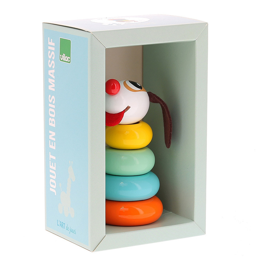 Деревянная пирамидка-собачка Vilac — яркая развивающая игрушка для самых маленьких. Ребёнок собирает забавную собачку из разноцветных колец, тренируя мелкую моторику, координацию движений и логическое мышление. Разные по размеру и цвету детали помогают учить цвета, понятия «больше–меньше» и развивают внимание. Игрушка выполнена из прочного дерева с гладкими, безопасными для детских рук поверхностями и покрыта нетоксичными красками. Идеально подходит в качестве первого развивающего подарка малышу.